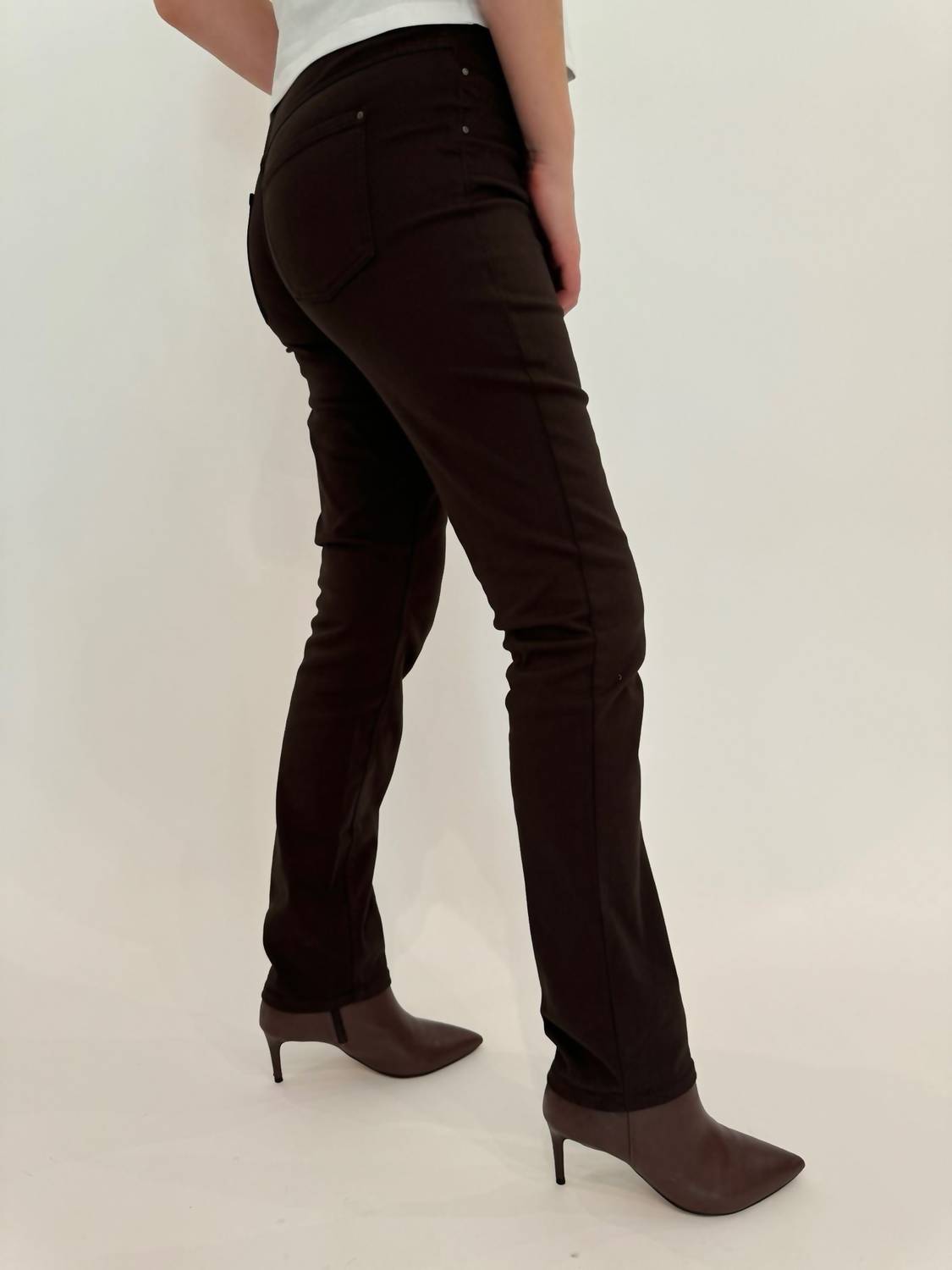 These must-have jeans are fit to perfection. Elevate your casual style in Deep Brown, designed with a sleek slim-straight fit. Solid, straight-leg jeans feature a low rise and a comfortable waist for an easy everyday look. Crafted with a composition of 70% Cotton, 17% Polyester, 11% Lyocell, and 2% Spandex, sourced with Better Cotton standards. Made for both style and sustainability. Equipped with a button closure and a practical 5-pocket design, offer high wearing comfort suitable for any travel occasion. Machine wash and tumble dry for effortless maintenance. Foot width for size 36 is 38cm.