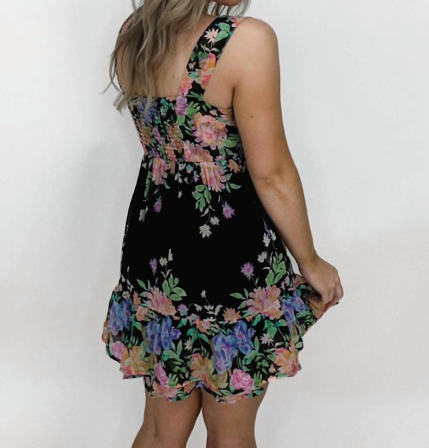 Introducing the Charlene Dress by Mahila, a captivating mini dress in a chic sable hue. This sleeveless A-line dress showcases a feminine sweetheart neckline, adorned with a delicate floral pattern. Closure is an effortless pull-on style designed for women seeking both comfort and grace. Care: Machine wash and lay flat to dry.