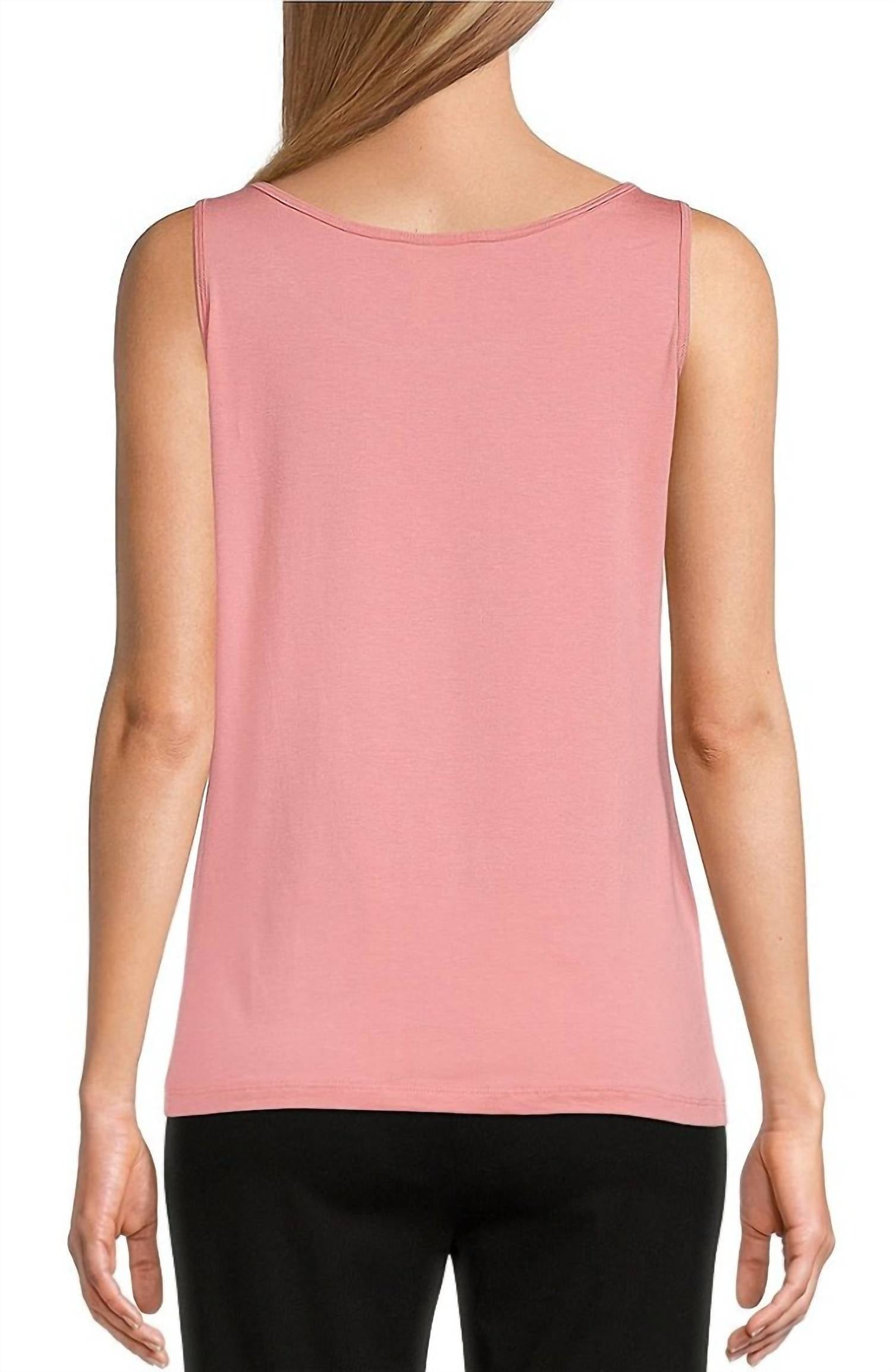 Fit, fabric and functionality. This tank top checks all the boxes. Discover the definitive addition to your summer collection with the Sleeveless Fitted Tank Top by Multiples in dusty pink. Crafted from a comfortable cotton/modal/spandex blend, this tank boasts a chic scoop neckline and a straight hemline. With a convenient pullover design, this solid-patterned top measures approximately 25" in length, making it a versatile fit for vacation or everyday use. Embrace the Y2K trend with this imported piece that combines comfort and style seamlessly.