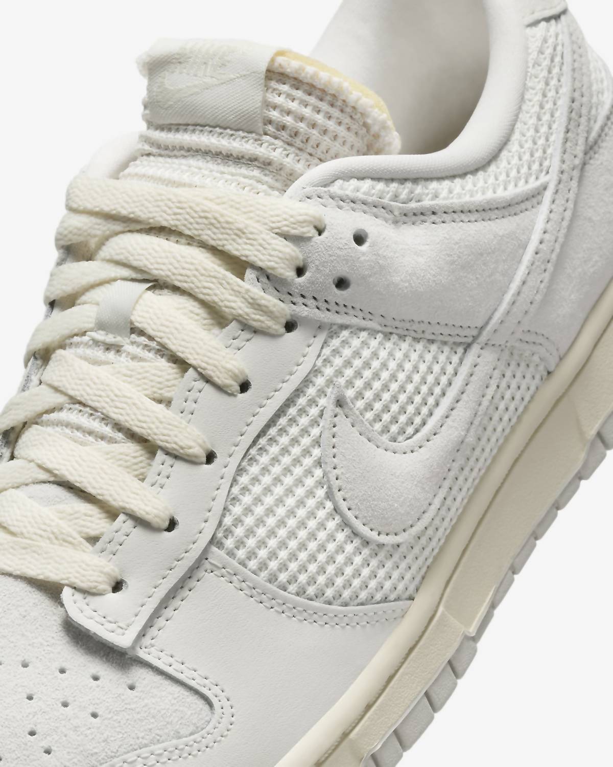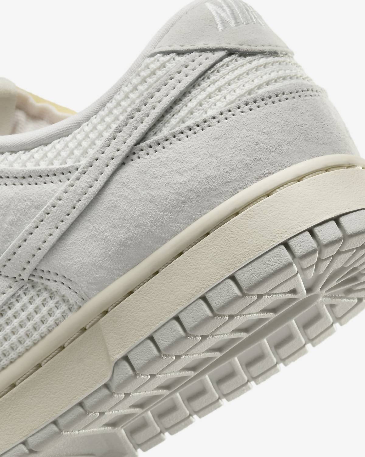 Unveiling the NIKE Men's Dunk Low Waffle Sneakers, synonymous with '80s basketball nostalgia and modern street style. Featuring a phantom, sail, coconut milk, and light bone palette, its durable leather upper ages gracefully with use. Designed with a low-cut, padded collar, this sneaker ensures comfort and a sleek profile. A foam midsole provides lightweight cushioning, while a rubber outsole with classic hoops pivot circle enhances durability and traction. Perfect for adult sneaker enthusiasts, its iconic silhouette includes an almond toe design. Model: HF4297-001.