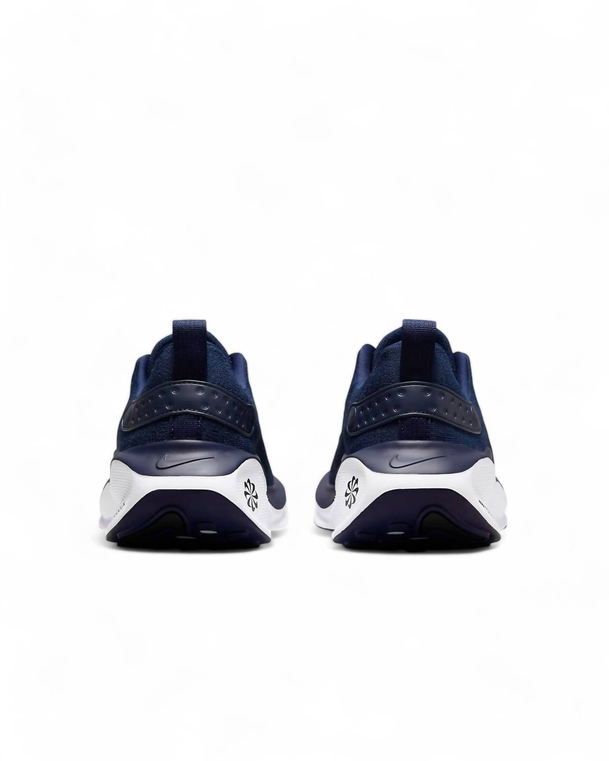 Experience the pinnacle of performance with the Men's React Infinity 4 Running Shoes by NIKE, designed for uncompromising comfort and durability. The updated Flyknit upper features a water-resistant membrane to keep you dry, while the new ReactX foam in the midsole provides superior cushioning. A durable Waffle outsole and increased rubber ensure lasting traction on the roads. Weight: Approx. 354g (men's size 9), with a 9mm heel-to-toe drop, offering a snug fit with its ultra-comfortable collar and tongue. Shoe Width: Medium, with a Round Toe shape.