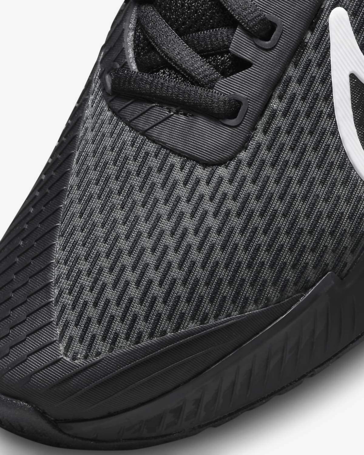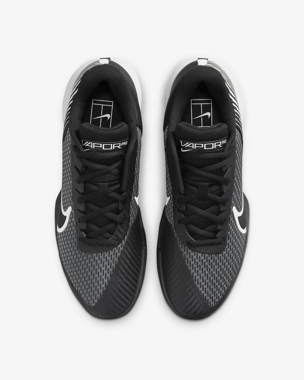 Experience unparalleled agility with the Men's Zoom Vapor Pro 2 Sneaker. This sneaker is designed with a low cut for enhanced speed and agility, featuring lightweight and breathable mesh material. The forefoot Zoom Air unit provides responsive cushioning, while the full-length foot frame ensures stability during quick movements. Style: DR6191-001, Color: Black. Perfect for hard-court surfaces, it includes a herringbone outsole built for optimal grip.