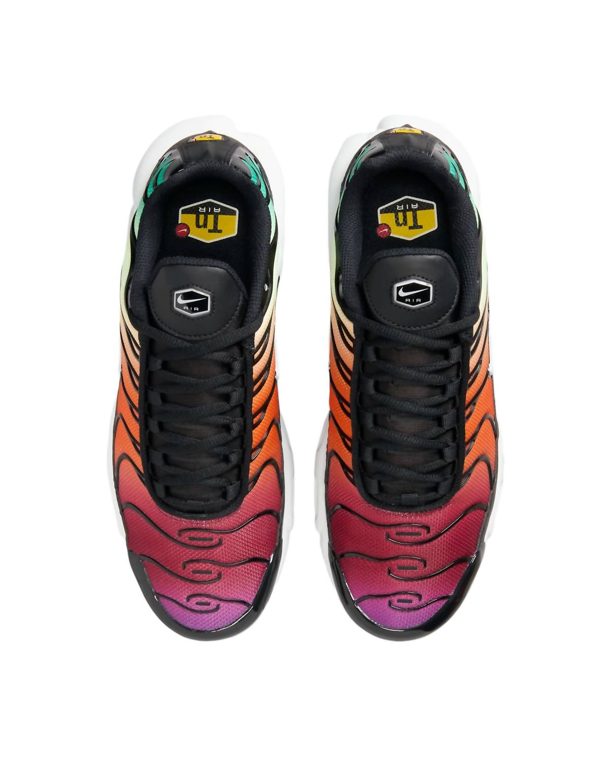 The Air Max Plus combines premium stability with exceptional cushioning and wavy design lines inspired by nature. Inspired by a whale's tail, its prominent arch adds structure, while the wavy fingers evoke palm trees and ocean waves. Nike Air units provide lasting, lightweight cushioning, and the gradient design adds a heritage touch. The synthetic upper with airy mesh offers comfort and durability, and the full-length rubber outsole ensures traction and durability.