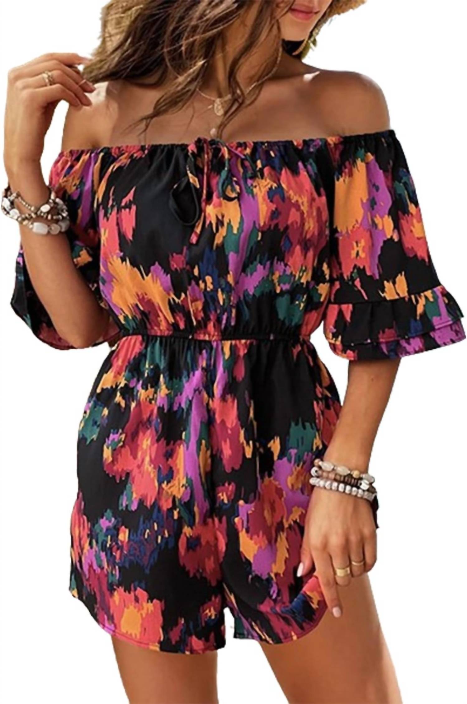 It doesn't take much for this one piece to look effortlessly cool. Add some statement jewelry to dress it up, or throw on some sneakers for a more casual vibe. Embrace bold style with the Off-shoulder Printed Romper by Ninexis, a vibrant addition to any wardrobe. This multi-patterned romper features a unique lotus leaf sleeve design and a flattering high-waist for a chic look. Crafted from smooth polyester, it offers a wide-leg style and convenient pull-on closure, while also boasting functional pockets. Care is simple with machine wash instructions, making it a practical yet stylish choice for women.