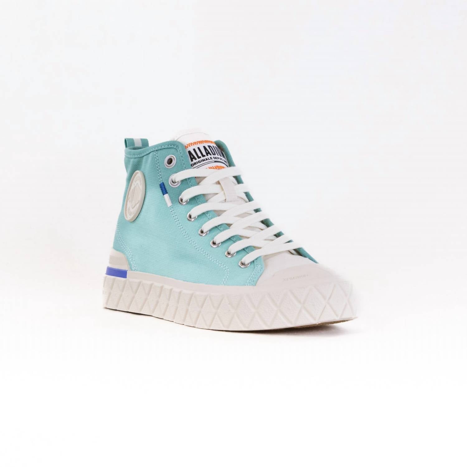 The Women's Palla Ace Chukka Organic by Palladium combines timeless design with modern functionality, crafted specifically for sunnier days. Featuring a mid-cut upper made from 100% organic cotton and enhanced with a rubber outsole, this sneaker-boot hybrid offers a flat heel style for ultimate comfort. Closure is achieved with lace detailing, complemented by branding elements like a round rubber patch and screen prints. Embrace effortless style with these streetwear-inspired sneakers in a sea green hue.