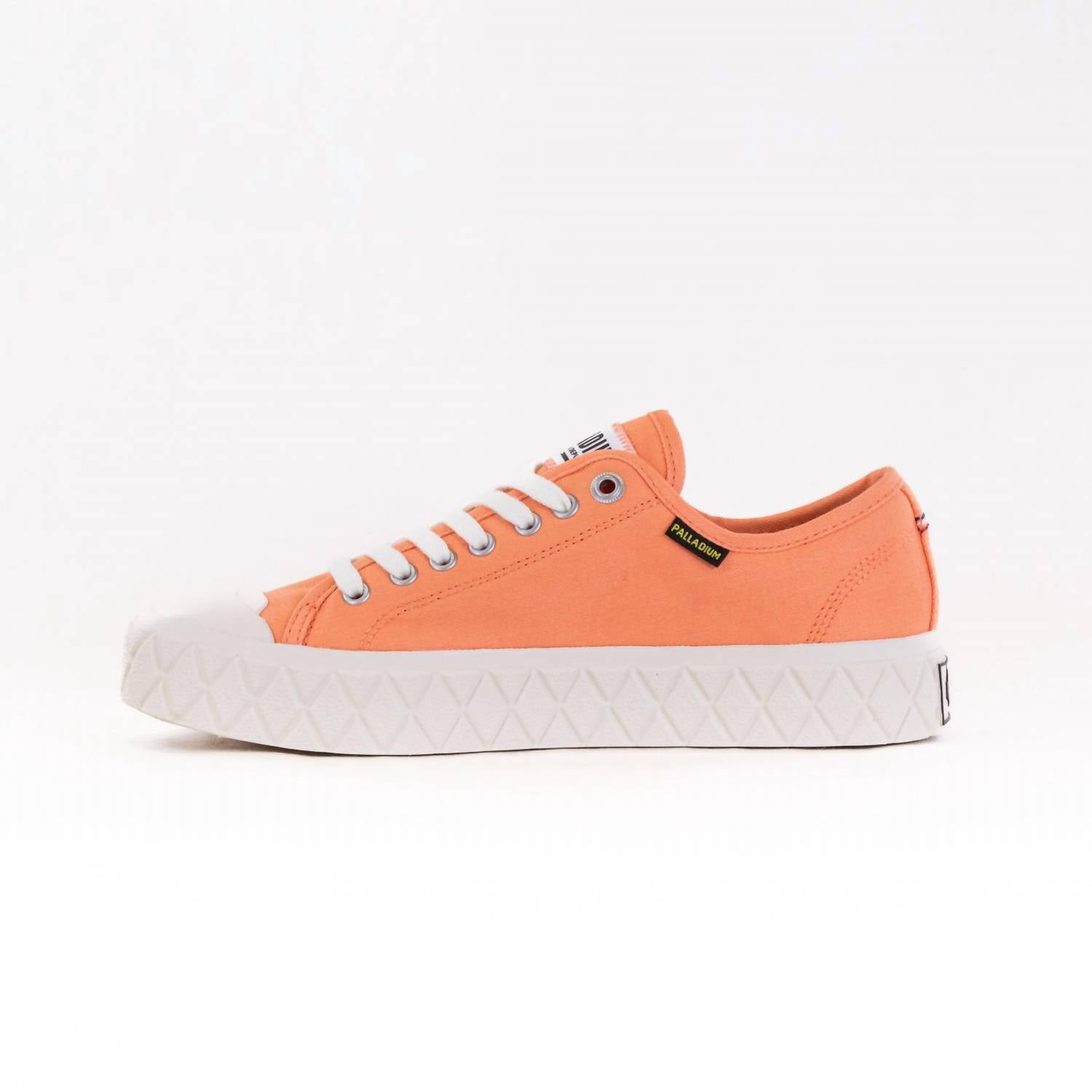 Meet the Women's Palla Ace Canvas Organic Sneakers by Palladium, a chic nod to French heritage in vibrant Sunstone Orange. These low-cut sneakers are crafted from 100% organic cotton for the upper material, lining, and insock, ensuring both style and sustainability. Featuring a 100% rubber outsole and a comfortable flat heel height of 25mm, these sneakers boast a lace-up closure and a durable rubber toecap for everyday wear. Ideal for spring outings, they're adorned with a side woven label and embroidery logo, reflecting both tradition and modern values while being proudly vegan.