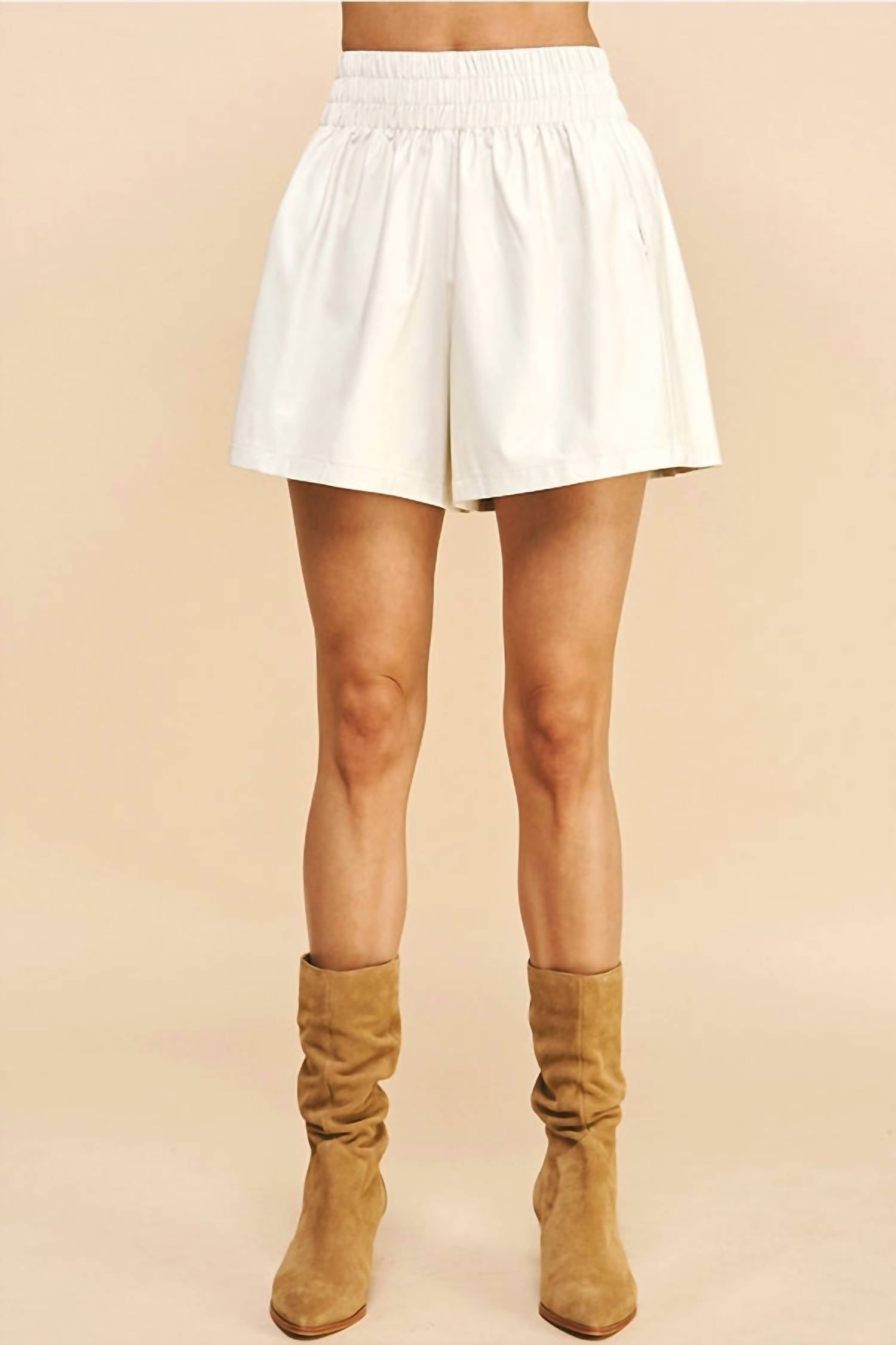 Introducing the Pinch Becky High Waist PU Leather Shorts by PINCH, a stylish addition to your summer wardrobe in a solid ivory hue. These shorts feature a flattering high waist with a comfortable pull-on closure and practical side pockets. Made from a cotton-blend composition of 55% Cotton and 45% PU, they blend edgy sophistication with a touch of quiet luxury. Perfect for music festivals, these shorts are a chic choice for casual outings and trendsetting evenings.