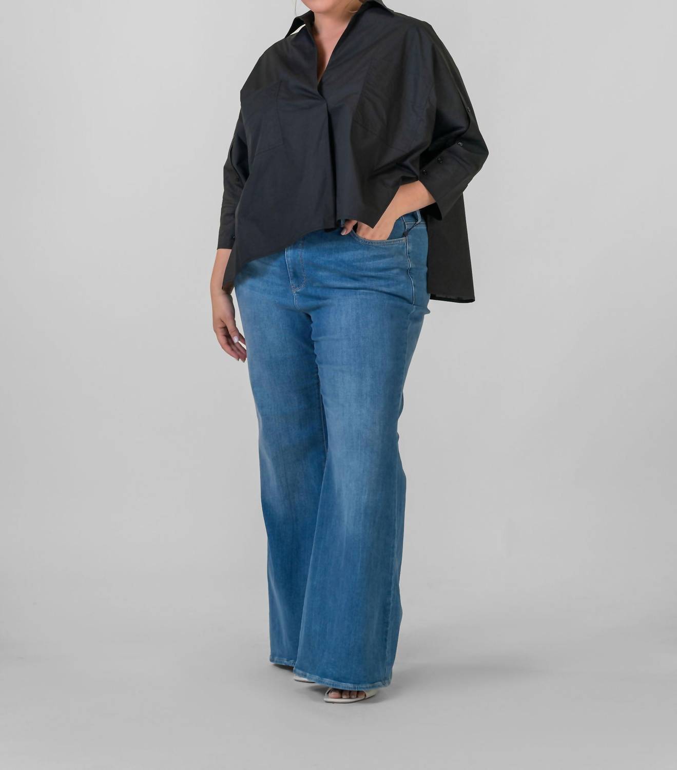 Perfectly tailored and soft to the touch. Introducing the Camisa Cut Out by Psophia in timeless black, a refined yet modern addition to any wardrobe. Crafted from premium cotton poplin, this shirt features a distinctive Johny collar and three-quarter sleeves that can transform into butterfly styles. It boasts a practical button closure and handy pockets for added convenience. Perfectly suited for the fashion-forward woman, this piece effortlessly blends traditional elements with contemporary flair.