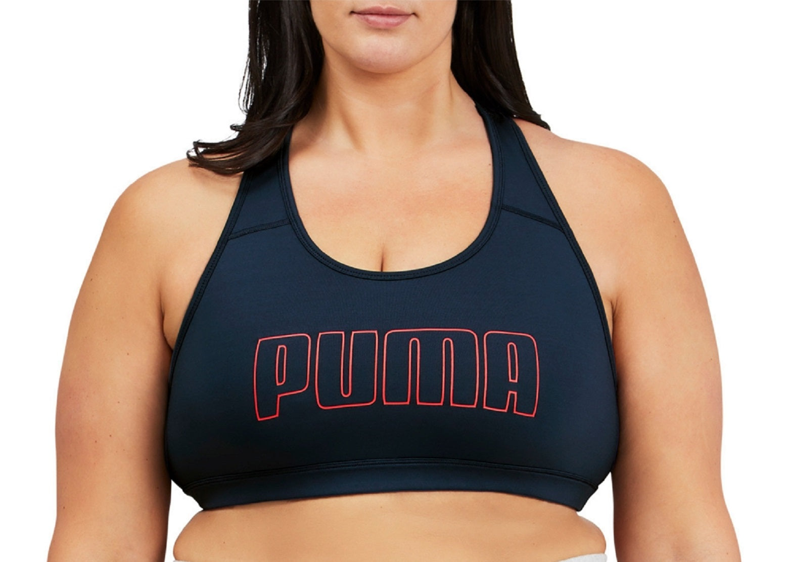 The plus size 4keeps sports bra from Puma is performance go to! This bra features stabilized shoulder straps with a racerback construction for a unrestricted range of motion and an enclosed elastic band for comfort.| Scoop neckline; logo print at front; elastic band| Mid impact sports bra ideal for | Imported| | Connect with a stylist & get free expert advice online or in stores for your wardrobe| home & more. Book Now