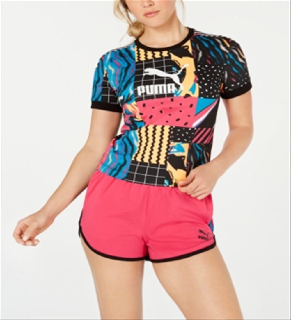 Slightly cropped and vibrant| this Puma T-shirt is in a vivid mix of prints that instantly brighten the day