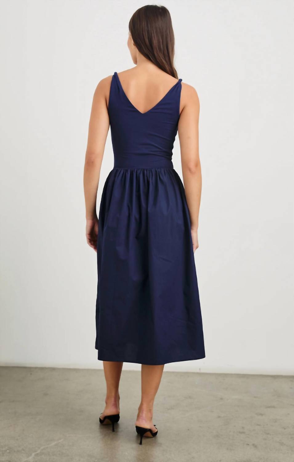 A midi dress so versatile, your options for wearing it are endless. Discover timeless style with the Rails Franca Dress, a sophisticated piece perfect for various occasions. This sleeveless midi dress in navy features a bodycon fit with an ultra-soft jersey cotton bodice and a lightweight poplin skirt, accompanied by a flattering v-neckline with twisted straps. The dress is designed for all-day comfort with added on-seam pockets. Crafted from a blend of 95% Modal and 5% Spandex for the bodice, with a bottom composition of 50% Cotton and 50% Tencel, it requires hand washing and line drying for care.
