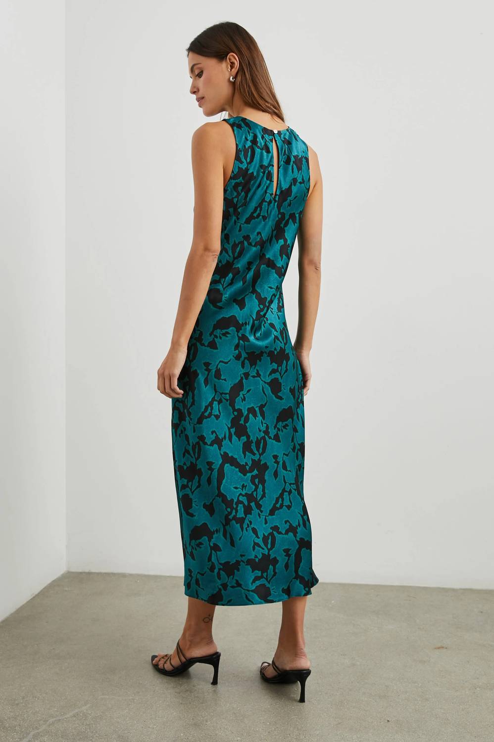 A midi dress so versatile, your options for wearing it are endless. Introducing the Gabriella Dress by Rails, a sophisticated choice for any dinner party, especially on New Year's Eve. This stylish midi dress in Teal Ice is sleeveless and features a classic crewneck, finished with an elegant button closure. Made from a rich blend of 55% Rayon and 45% Viscose, it measures 48 inches in length for a flattering A-line silhouette. Originating from an imported source, this patterned piece embraces the Quiet Luxury trend for Spring and requires dry cleaning for optimal care.
