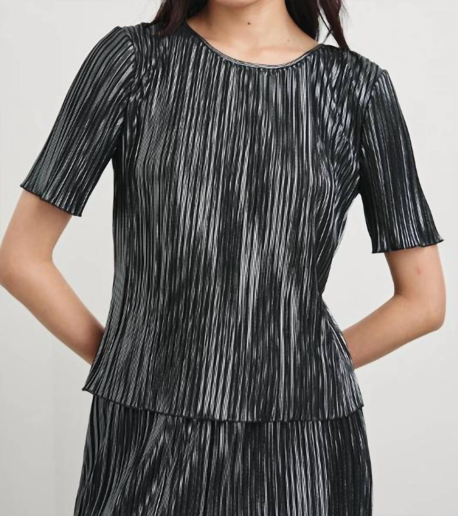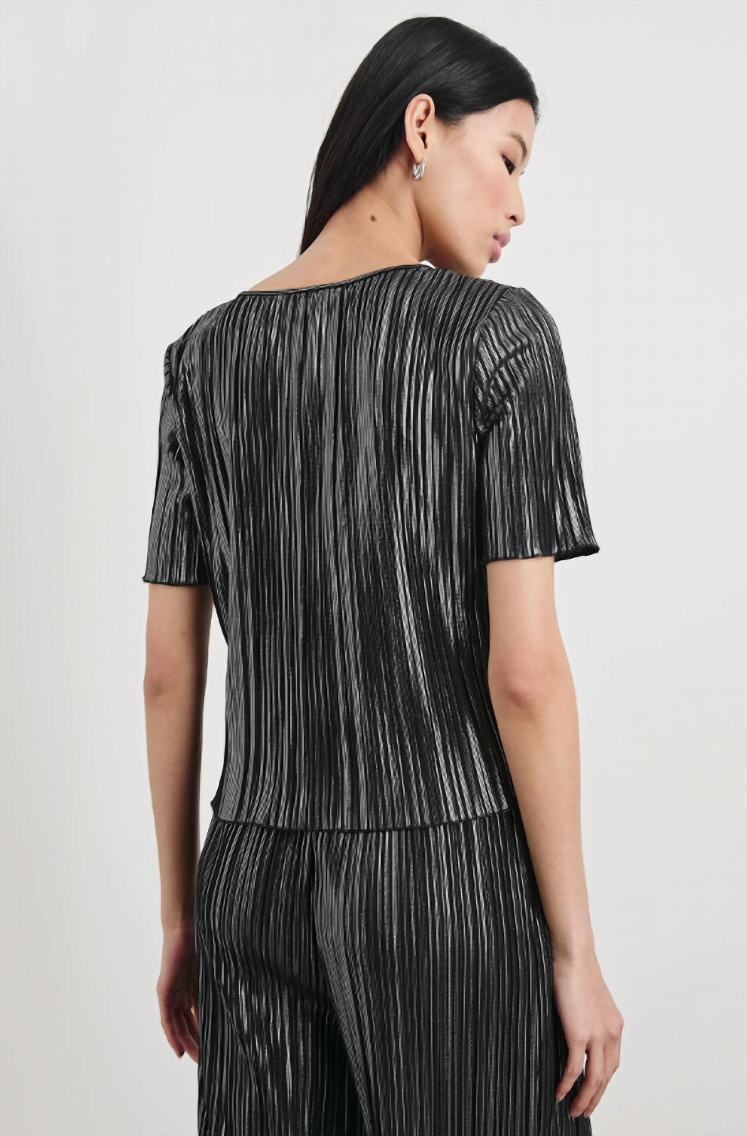 The short sleeve tee you'll want in every color. Become the life of the party in an event-ready top that prioritizes comfort. Crafted from a head-turning metallic plisse, the Goldie is ultra-lightweight with a free-flowing fit. Wear with denim or pair with the Liana pants to make a memorable statement.