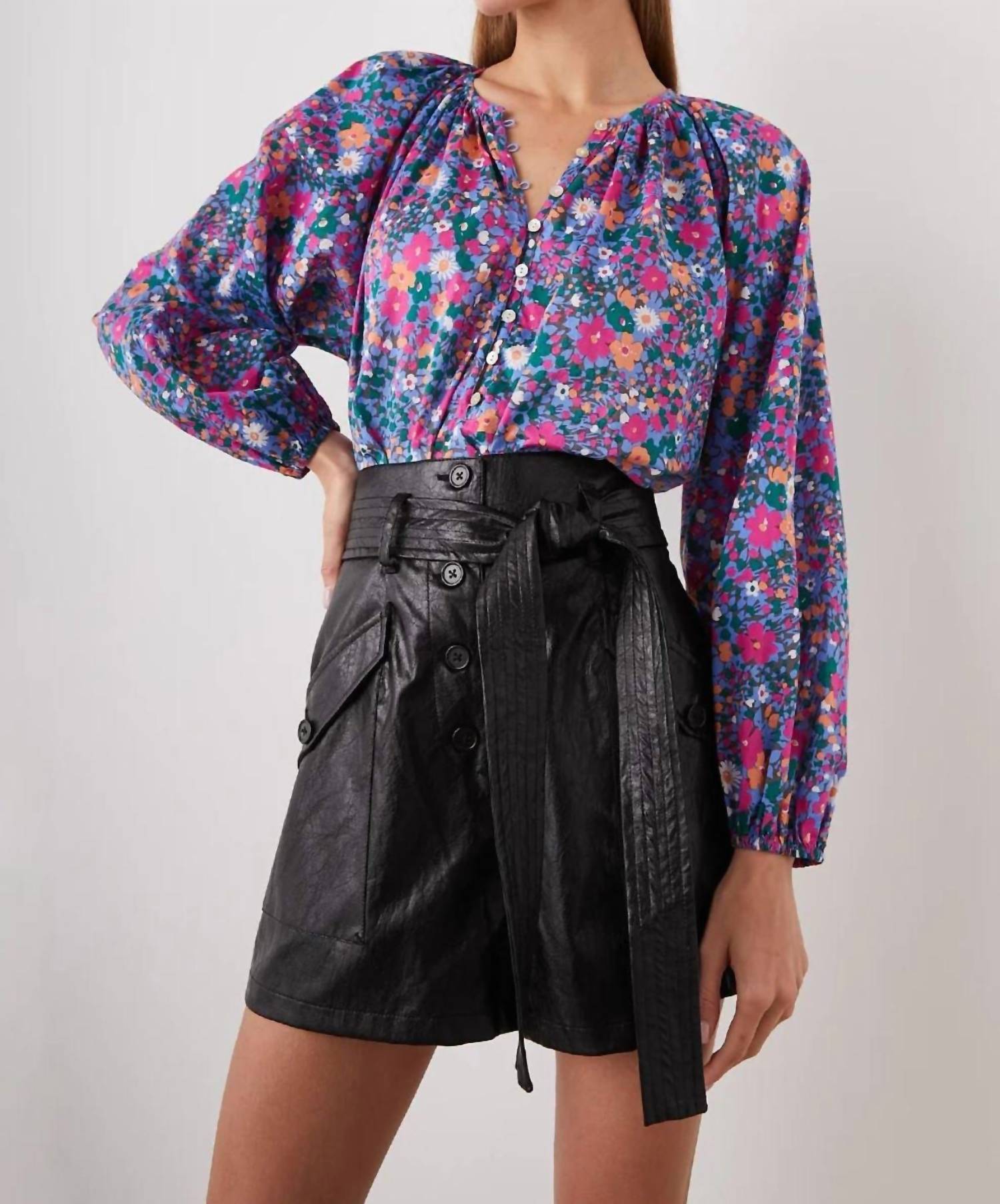 Pair this with your favorite jeans and slides for your next girls night out. It's a collarless blouse with voluminous sleeves, natural shell buttons, and a beautiful, 70s-inspired floral print. The 100% cotton makeup successfully merges comfort with effortless style. 100% Cotton. Imported. Hand wash cold.