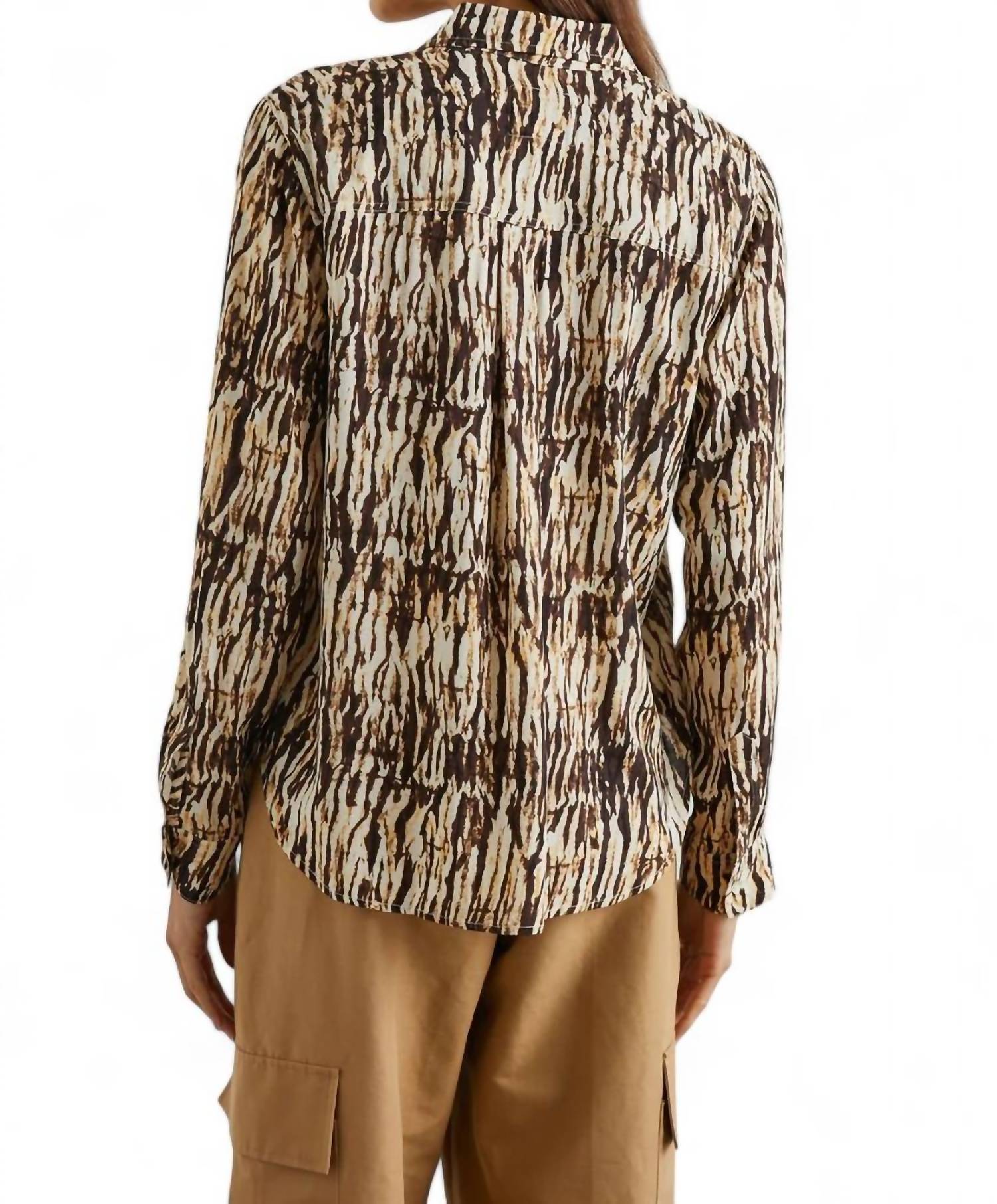 Pair this with your favorite jeans and slides for your next girls night out.This button-down features an earthy, animal-inspired print and is crafted from super soft, featherweight rayon. It is finished with a crisp collar, a chest pocket, and natural shell buttons. Made from 100% rayon, it should be hand washed cold. True to size, with a front body length of 26 inches (measured from Small).