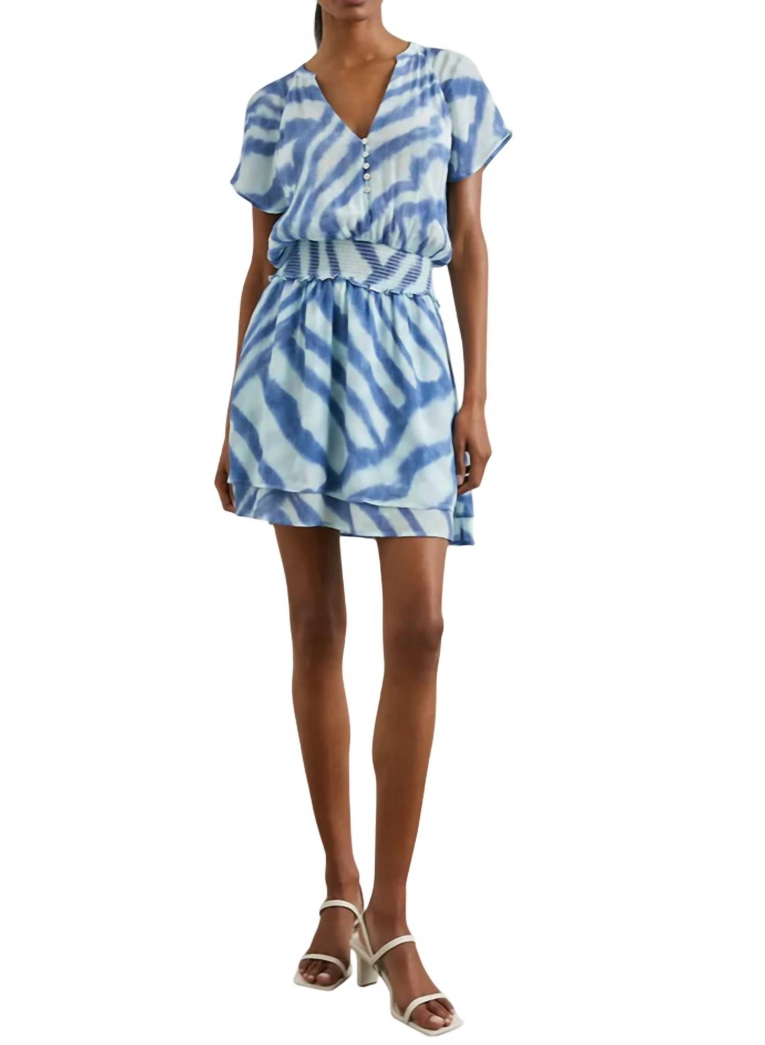 The kind of easy and flattering dress you'll be reaching for all season long. Pullover style dress with a smocked waistline and flowy skirt. Mini dress is made with lightweight crepe, making this style a warm weather staple. 70% Rayon | 30% Viscose.