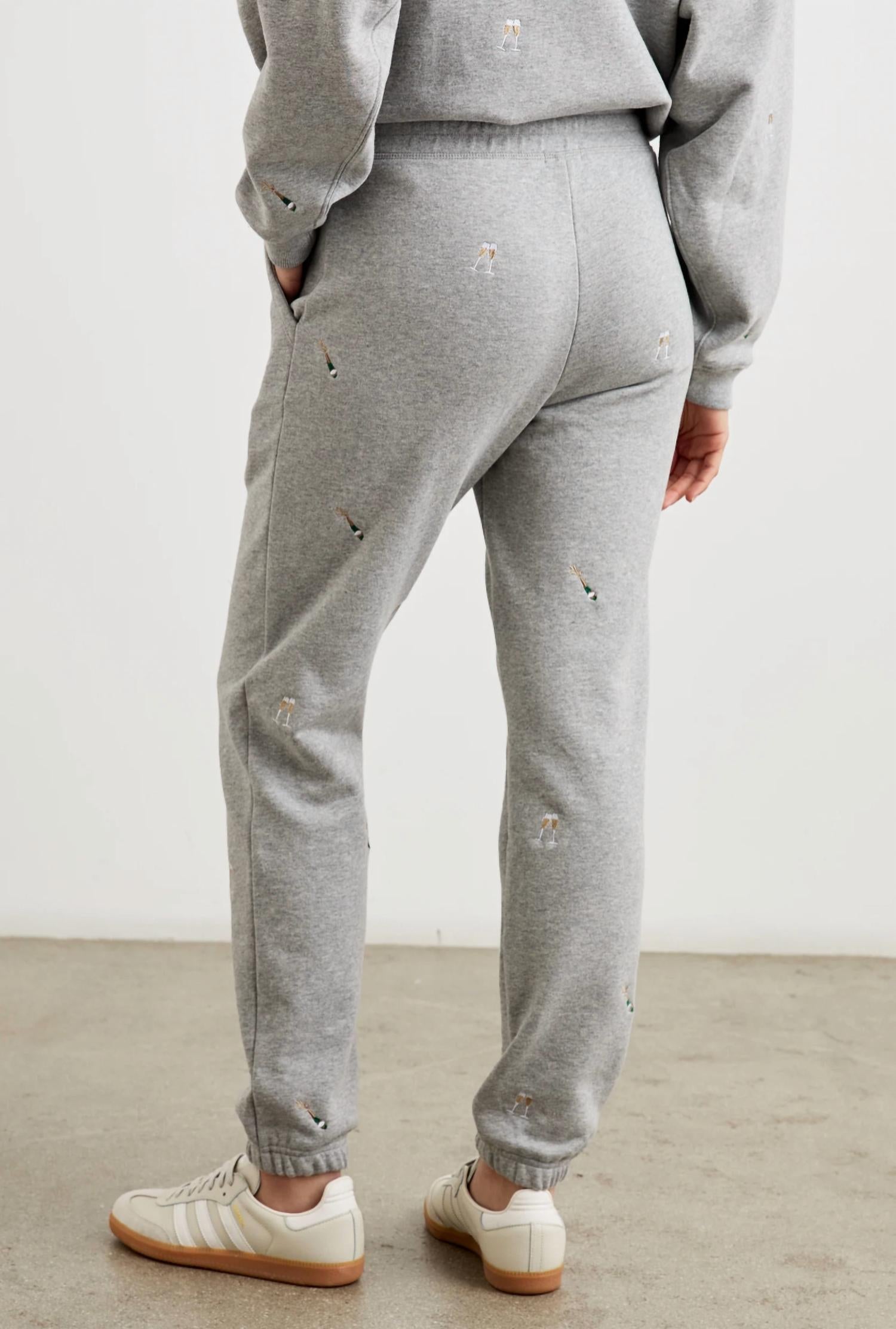 High-rise jogger crafted from super soft lounge terry, the Kingston features an elastic waist and cuff with a drawcord closure for an adjustable fit. Delicate champagne embroidery. 100% Cotton. Imported. Recommend ordering true to size. Inseam Length: 28 1/2". Front Rise Length: 11 1/4" (Measured from Small).