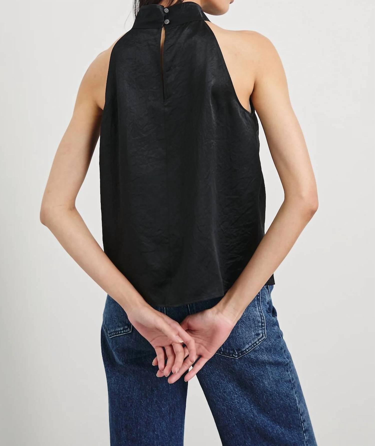 A versatile blouse that works from desk to dinner! Discover the Leah Halter Top by Rails, a chic embodiment of quiet luxury in a striking Black Crinkle texture. This strapless, full-length top crafted from 100% acetate exudes elegance and pairs effortlessly with jeans or its matching Maya Skirt. Designed with a convenient button closure, it is imported for elevated style. Care instructions: Hand wash and lay flat to dry for longevity.