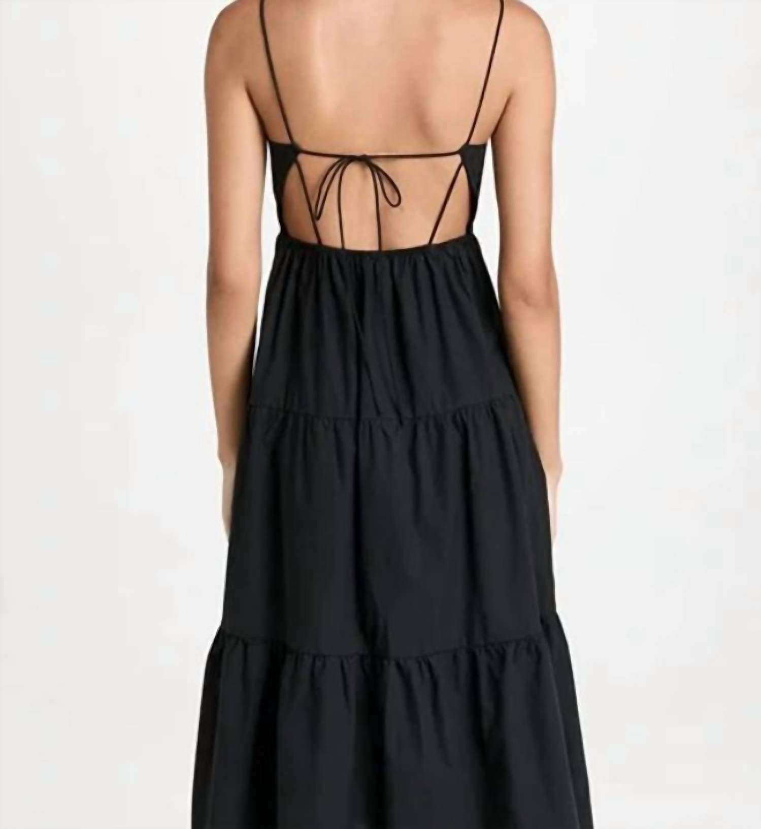 This is a must have staple for your closet!! A tiered midi dress, with a square neckline, elastisized waist, and cut out strappy back.