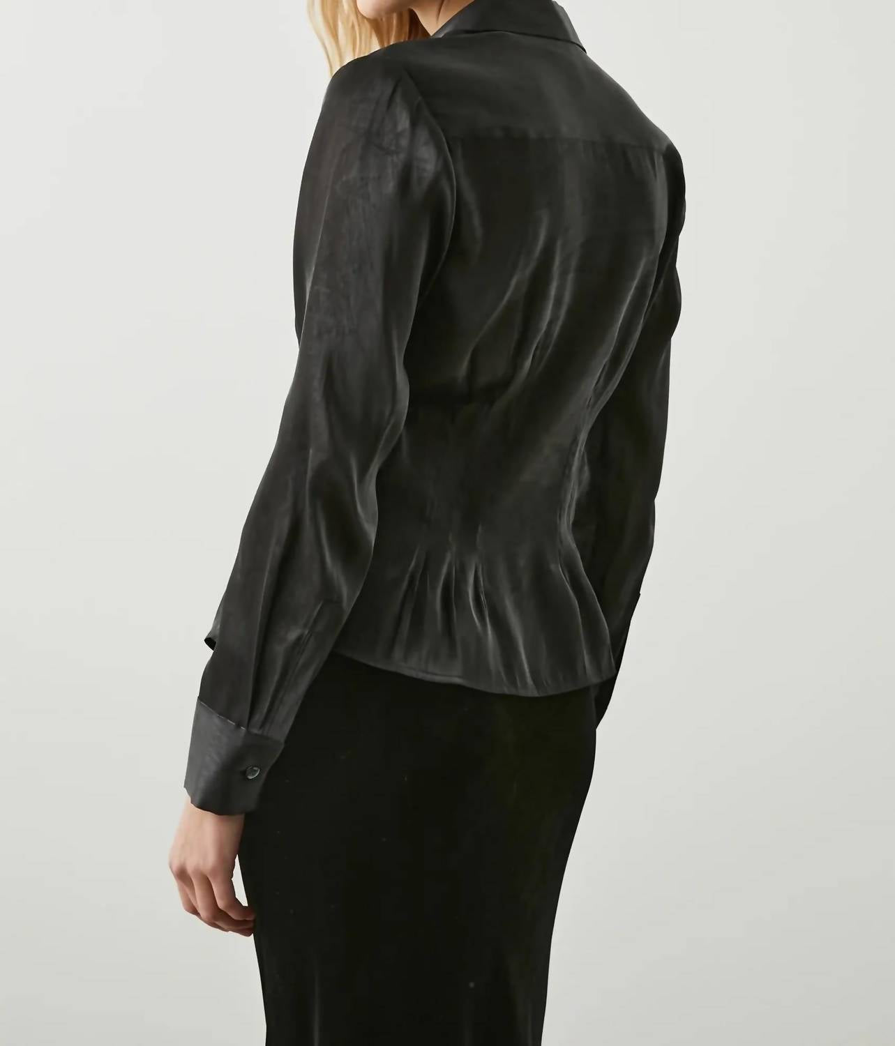 A classic button down shirt that will never go out of style.This top features flattering darting details across the front and back. Made from soft, high-quality organza, it has long sleeves and a collar. 100% Polyester. Imported. Recommend ordering true to size. Front body length: 22 1/4" (measured from Small). Dry clean only.