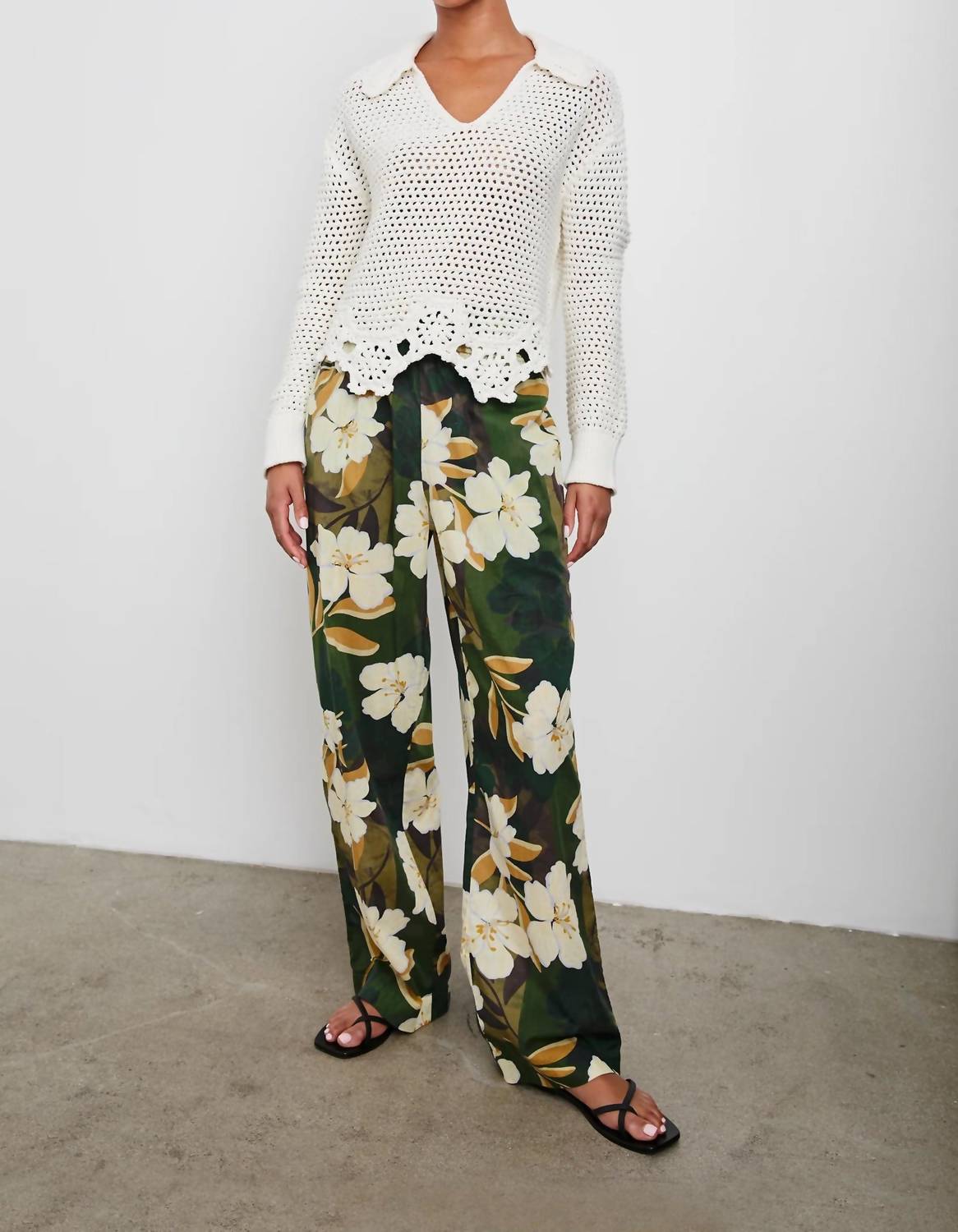 A timeless v-neck sweater that works season after season. Elevate your beach cover-ups with the Louise Sweater by Rails in Ivory, designed to make a statement with its open-knit crochet style. This women's textured V-neck piece is crafted from 100% cotton, ideal for pairing over a swimsuit or a tank and jeans for versatile wear. It features long sleeves and a floral scalloped hem, measuring 16.5 inches in garment length. The pull-on closure ensures ease of wear, and it is imported for quality assurance. Care instructions advise hand washing and laying flat to dry.