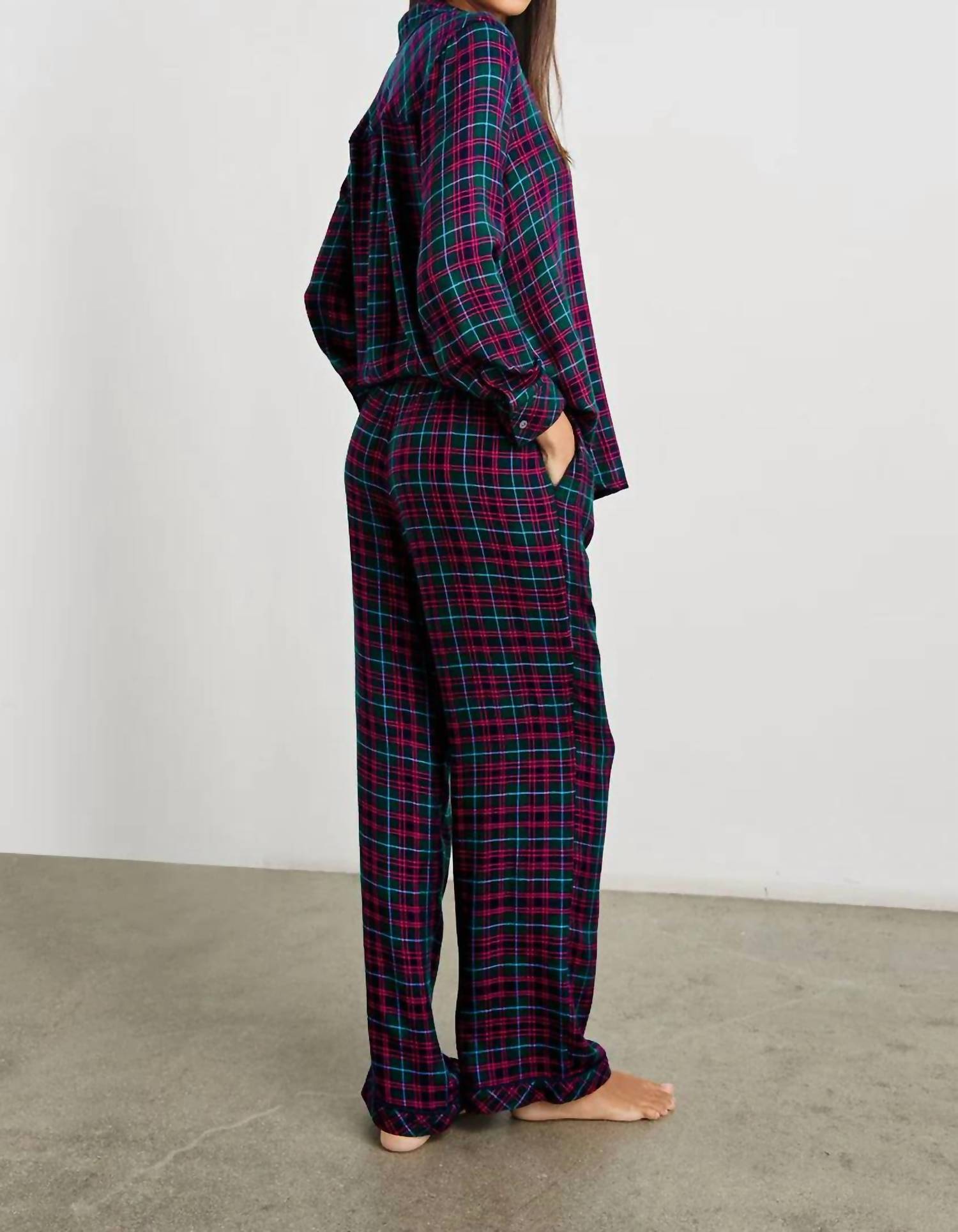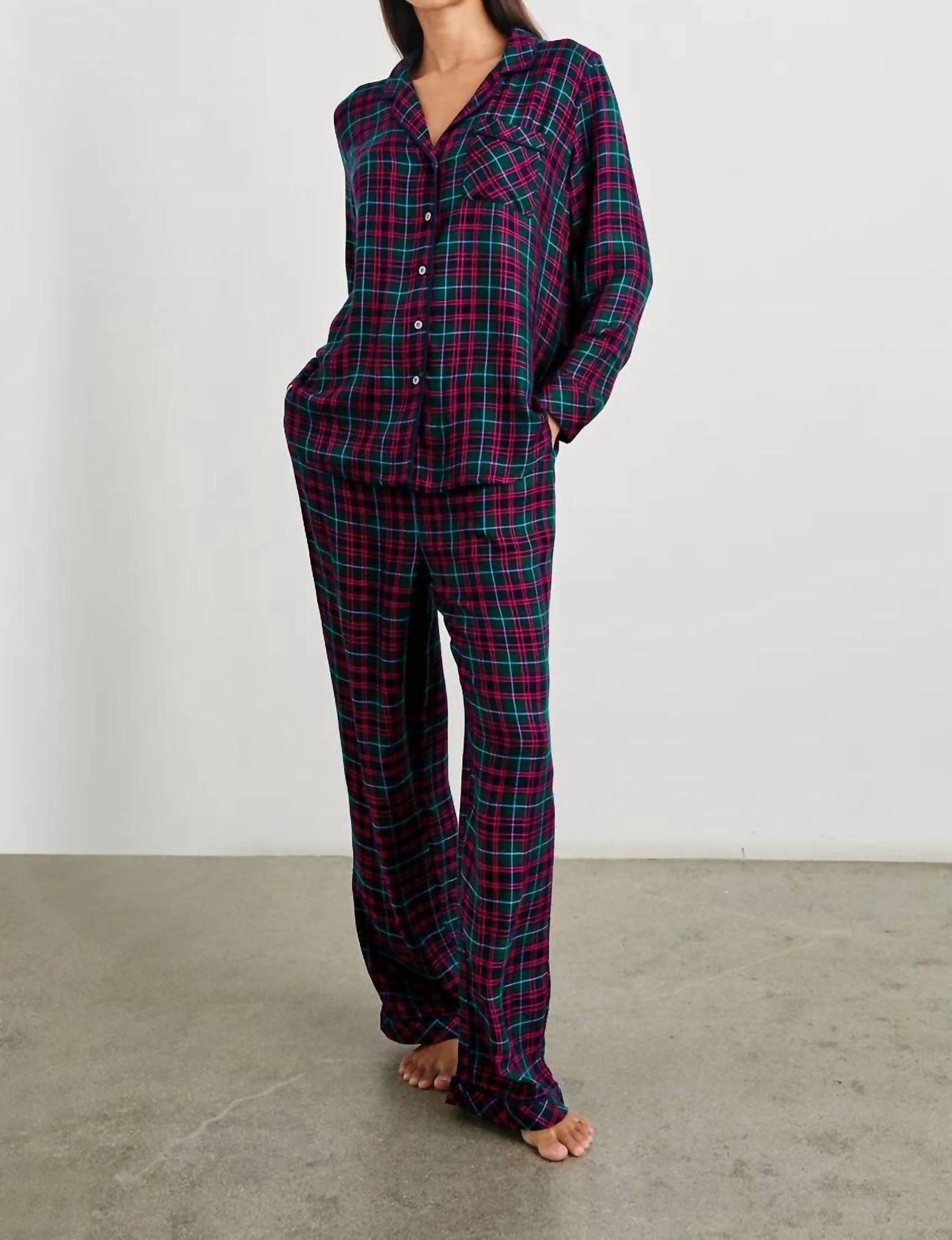 A set so cute you'll never want to take it off. Designed to look good while lounging, this little number is the perfect outfit for hanging at home in style. Experience the plush comfort of the Luna Plaid Pajama Set by Rails, crafted for a cozy night's sleep. These Evergreen Fuschia Ice PJs feature long sleeves and are made entirely from our signature rayon, offering a feel as luxurious as cashmere. Designed with a handy 26 3/4" front body length, 11 3/4" front rise, and 28 1/2" inseam (in size small), they represent the pinnacle of comfort-driven design. Origin: Imported. Care: Hand wash cold, lay flat to dry, iron cool if necessary.