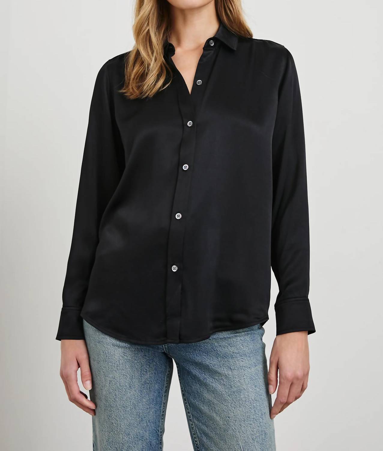 Designed to skim your curves fluidly, the Maria is fabricated from luxurious satin back crepe — feminizing the traditional shirt by removing the patch pocket and adding natural shell buttons. Wear any season, this is a timeless classic.