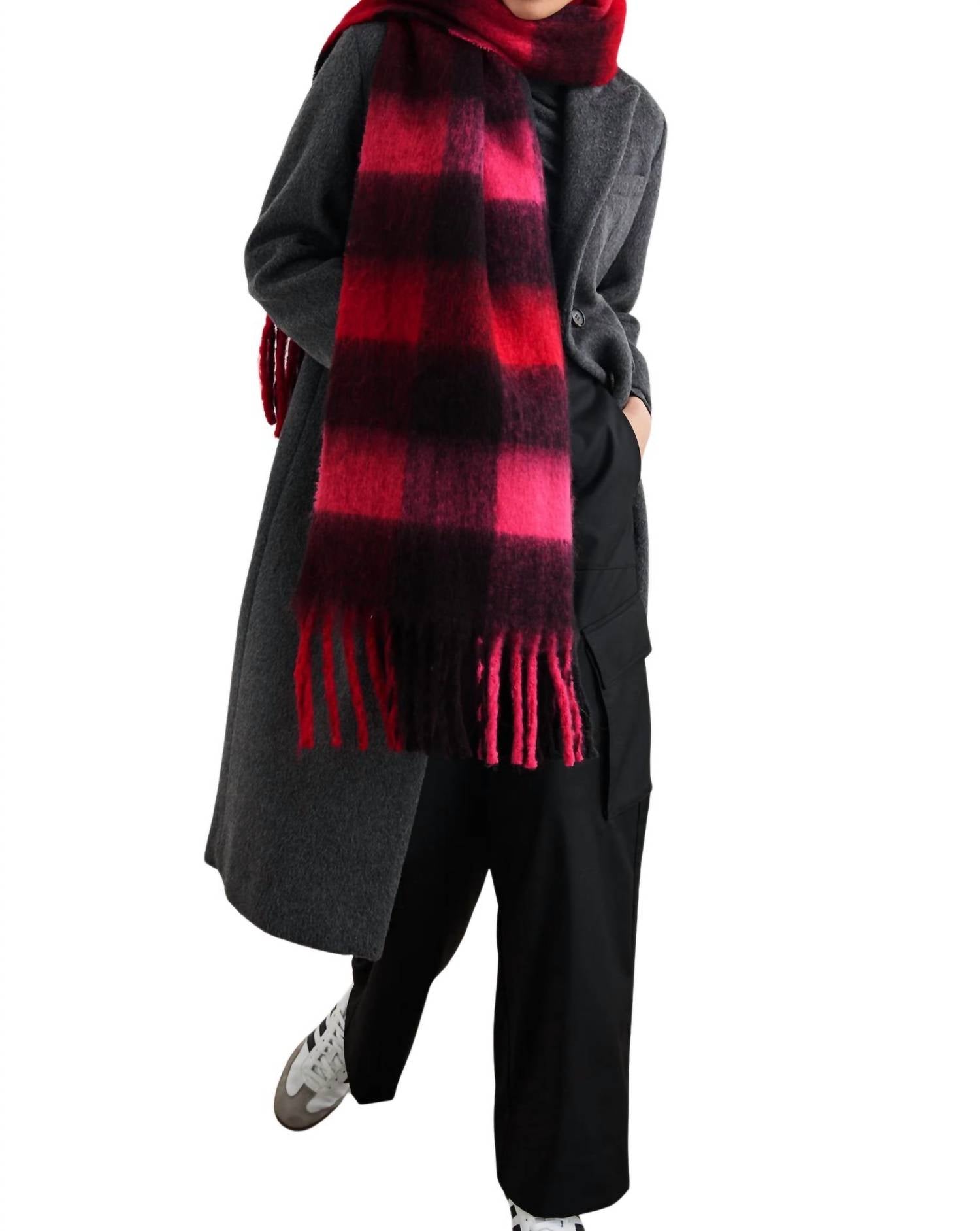 Both classic and versatile with the endless ways you can wear it. Stunning accessory in Scarlet Onyx. Crafted from 100% polyester. Chic scarf measures an elegant 79" x 15", offering both style and warmth. Dry clean only. Elevate your look effortlessly with this versatile piece.