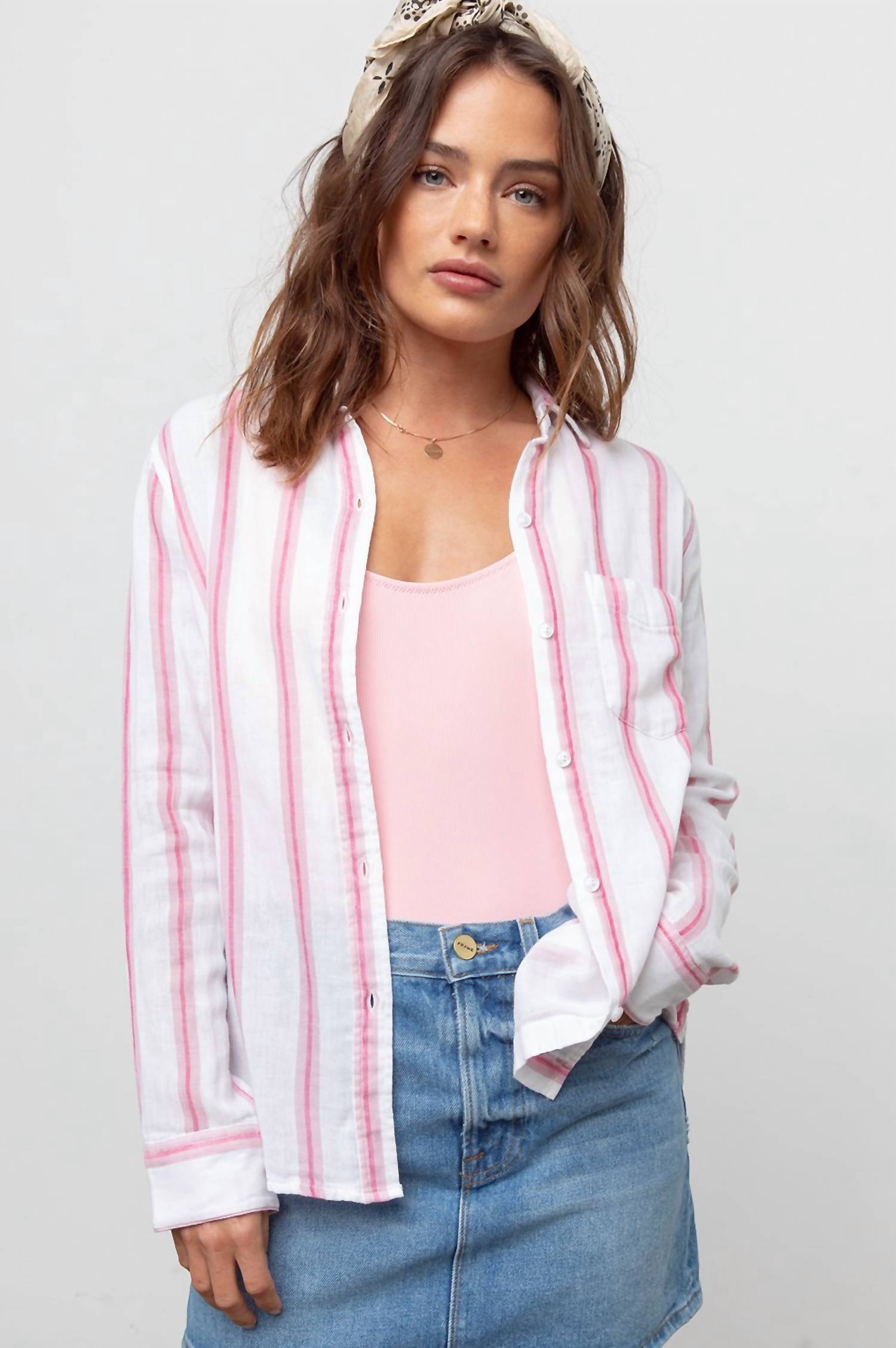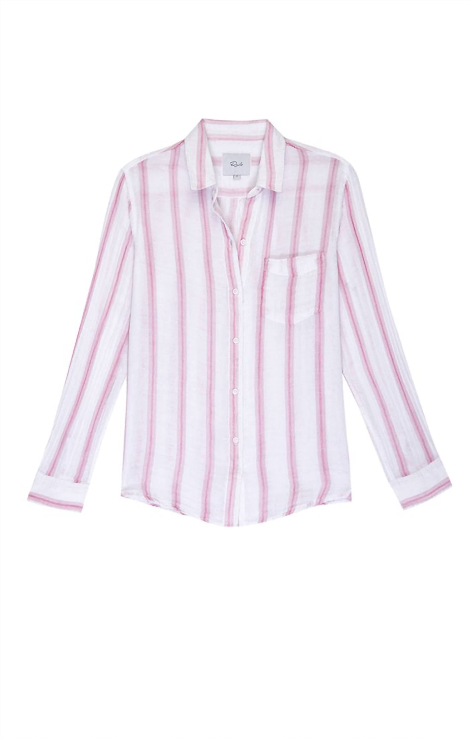 Great fit, cute design, soft fabric. You'll love everything about this long sleeve tee. Long sleeve. Double gauze button-down. Muted rainbow stripe pattern. Lightweight. Breezy and breathable. 100% Cotton. Hand Wash Cold. Hang Dry. No Bleach.Imported.