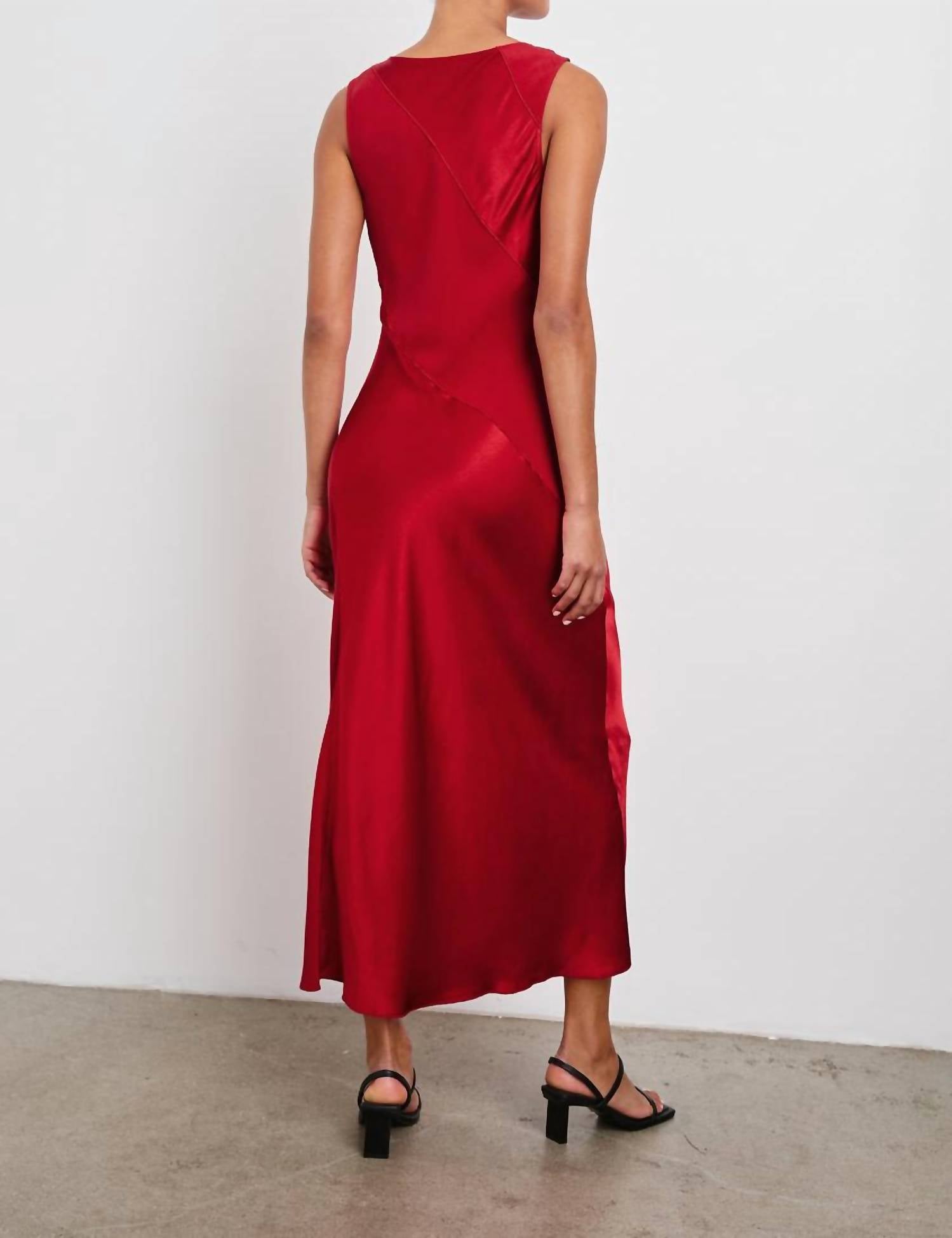Experience elegance with the Sanya Dress by Rails, a striking choice in scarlet for any evening event. This sleeveless midi dress is crafted from a luxurious blend of 55% Rayon and 45% Viscose, boasting a lustrous satin crepe finish and a sophisticated boatneck. With its bias-cut design and a stylish front thigh slit, it features contrasting matte diagonal panels that enhance its monochrome appeal. Closure is pull-on for ease, and it’s best maintained with dry cleaning, adding appeal to any Valentine's Day or summer occasion.