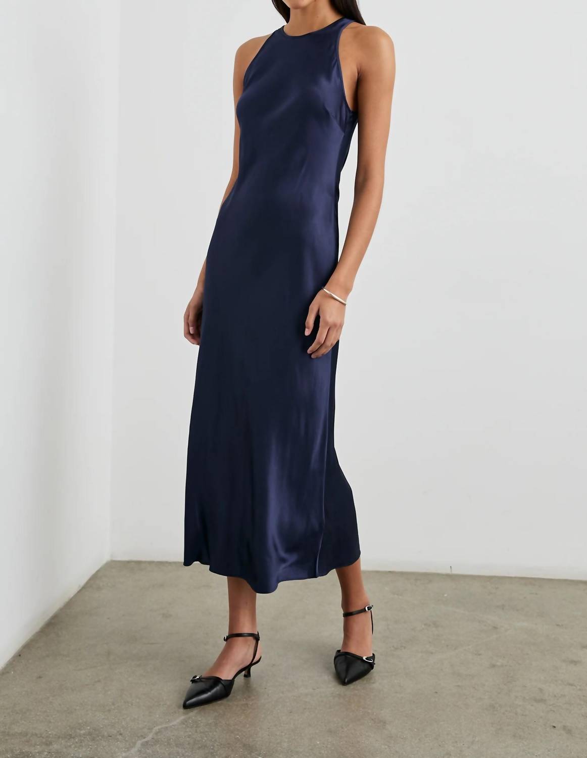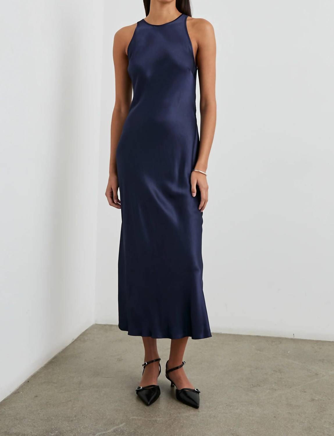 A midi dress so versatile, your options for wearing it are endless. Discover the Solene Dress by Rails, an embodiment of understated elegance in a rich navy hue. Crafted from a blend of 55% Rayon and 45% Viscose, this sleeveless midi dress boasts a lightweight satin crepe with a unique lustrous look. The sheath silhouette is perfect for warm days, featuring an adjustable tie closure at the back. Ideal for those who appreciate fine craftsmanship and comfortable sophistication.