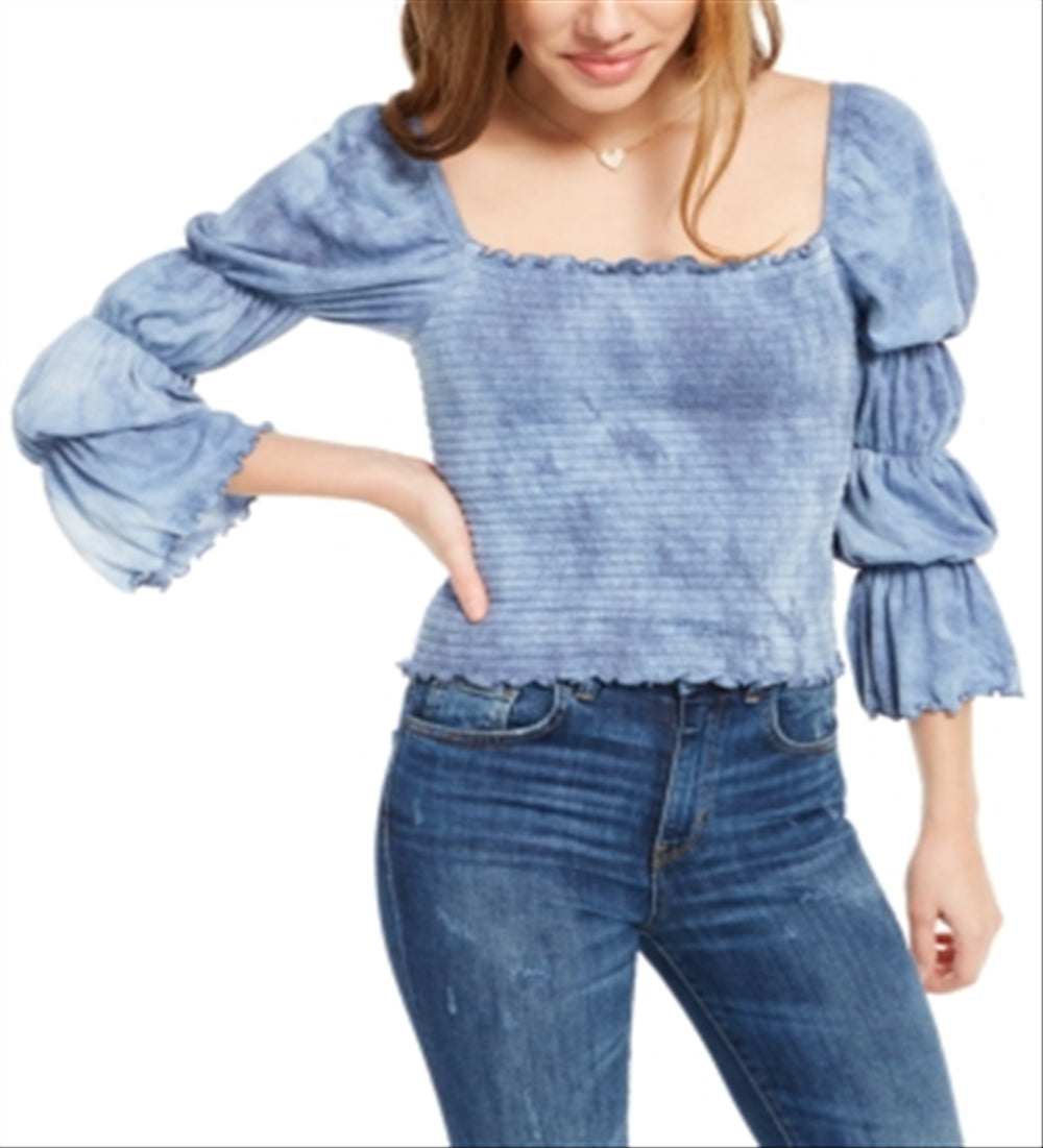 Rewash Junior's Tie Dyed Smocked Ruffle TrimTop Blue Size Small