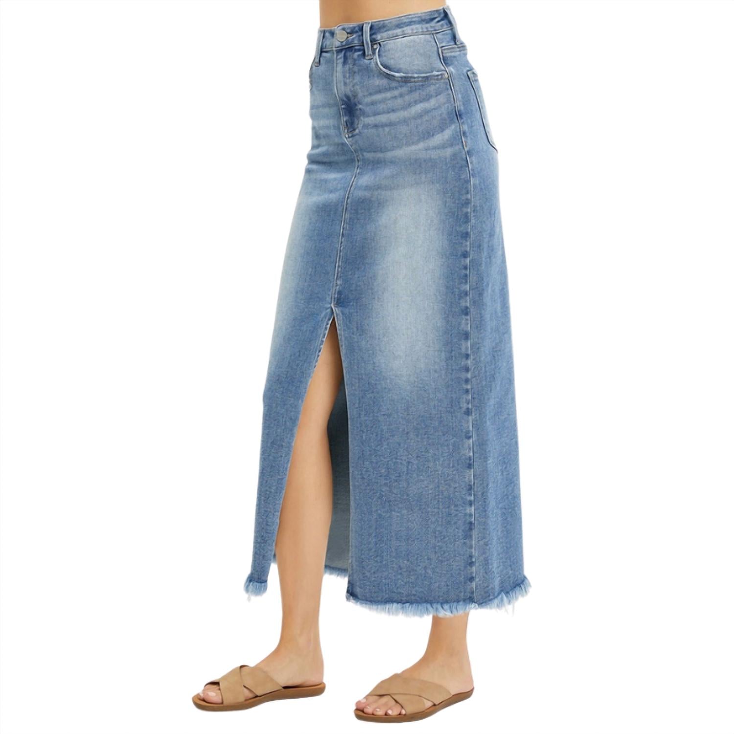 Flowy, comortable and stylish. This maxi skirt is a fan favorite. This high rise Midi/Maxi denim skirt is buttery soft and an all way stretch. So chic and comfortable you'll be reaching for this beauty day and night! 74% Cotton, 24% Poly, 2% Spandex.