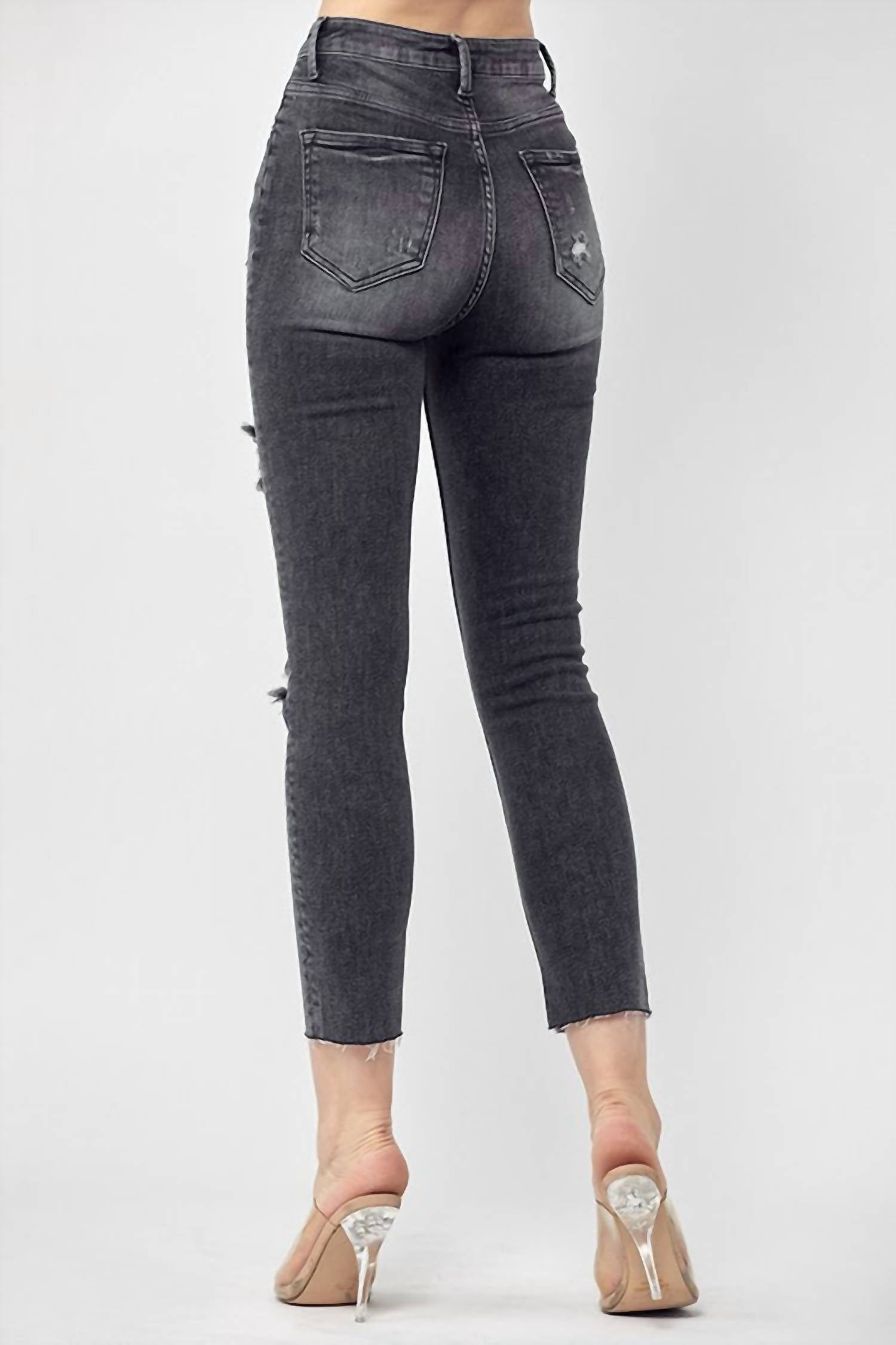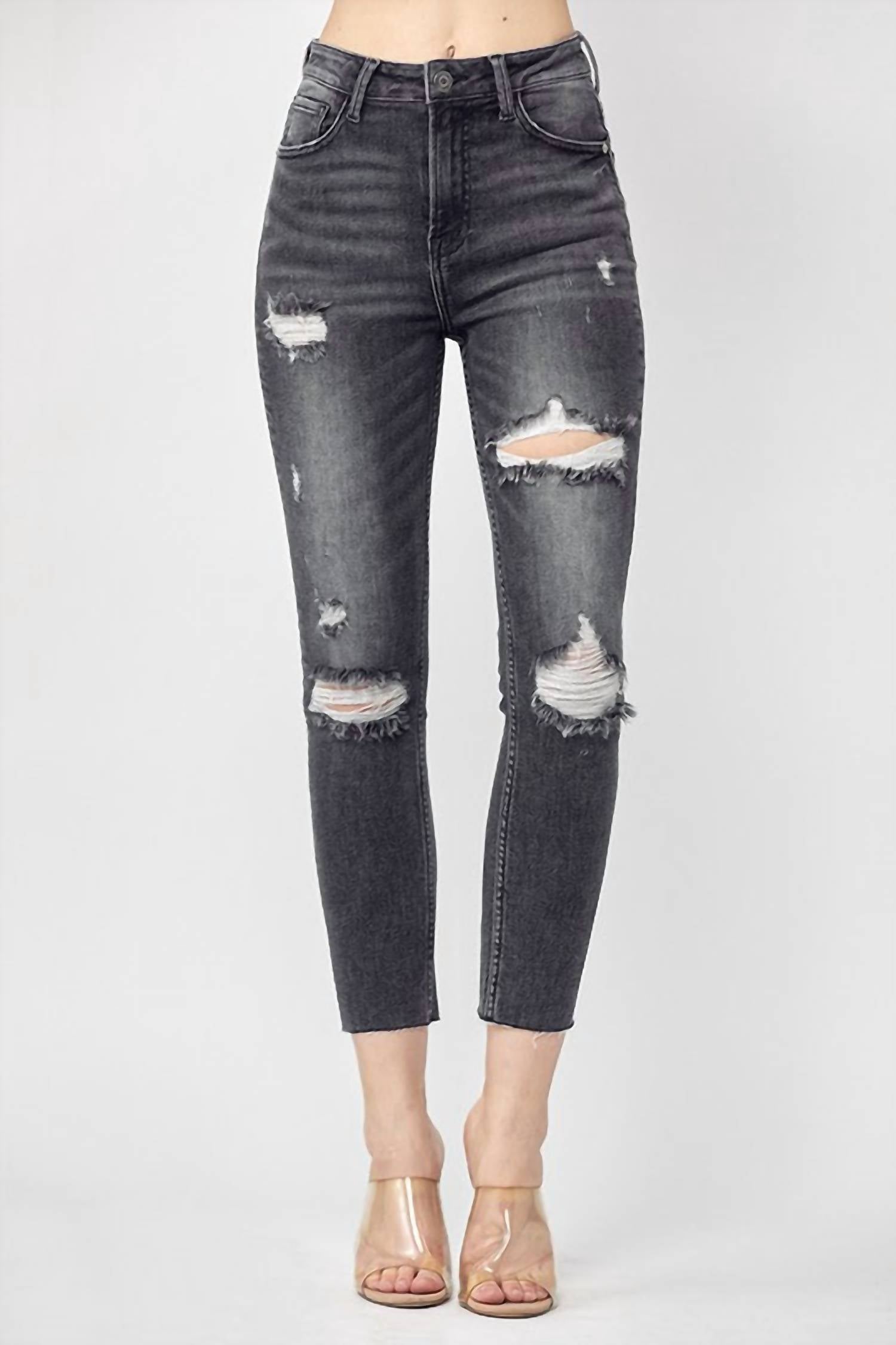 A skinny jean that is both flatering and comfortable. We love this style because it works great with boots, or without! Introducing the Olivia High Rise Distressed Skinny Jeans by RISEN, perfect for adding an edge to your spring concert outfits. These black, solid skinny jeans feature a high-rise waist and skinny leg style, providing a flattering fit. The button closure provides a secure fit, while the pockets offer functionality. Made with attention to detail, these jeans are designed for style and comfort.