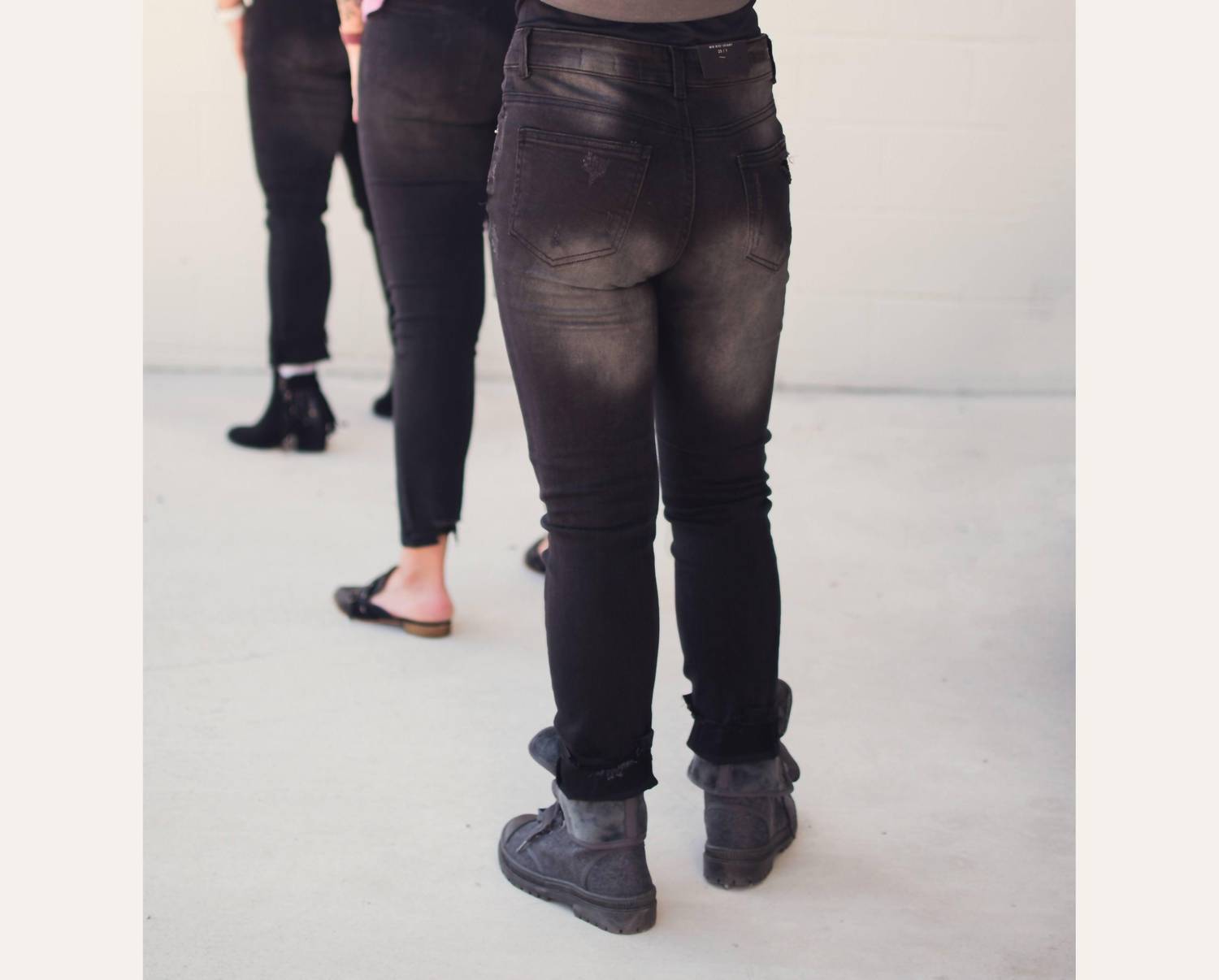 Everyone needs a good pair of skinny jeans and this is a style you'll keep reaching for no matter the season. Black Relaxed Skinny Distressed Jeans Looking for a versatile pair of pants that can be dressed up or down? These black skinny jeans are perfect! They have a distressed look with slight fading for a bit of edge, while the stretchy fabric and relaxed fit keep them comfortable. Dress them up with a cute blouse and heels or keep it casual with a tee and sneakers. Either way, you'll look great! Brand: Risen Jeans Color: Black Lots of Stretch Distressed 5 pockets Rise : 9.5" Inseam:27.5" in a size small Slight Fading 95% Cotton, 4% Polyester, 1% Spandex