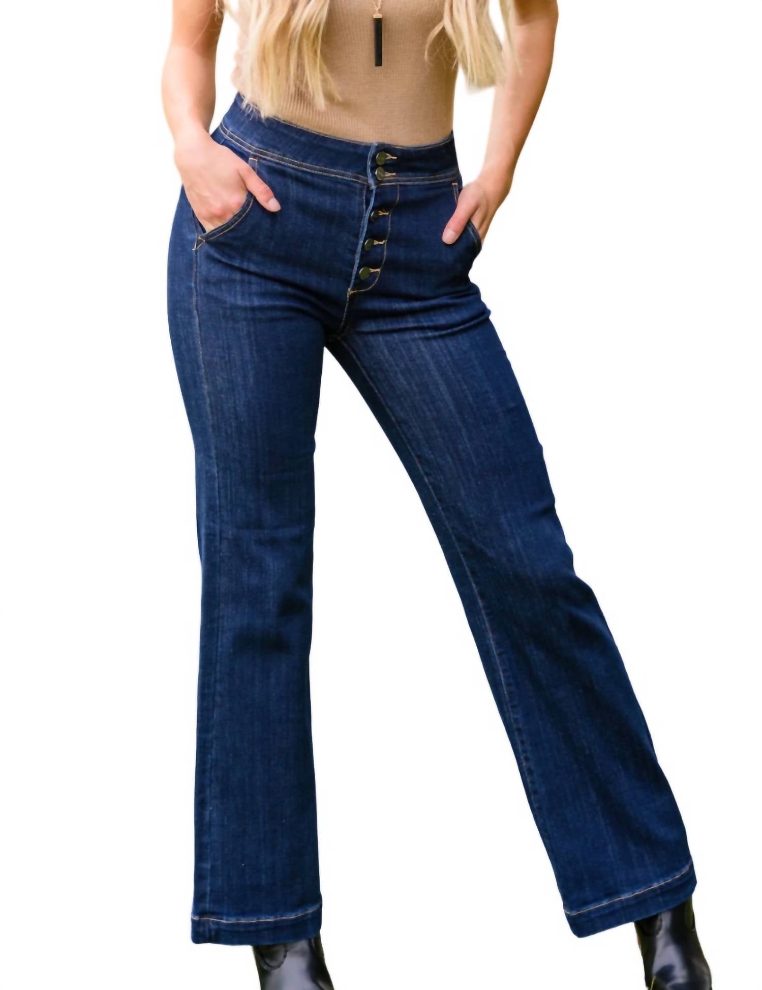 Pair these wide leg jeans with mules, slides or your favorite strappy sandals.Hi-rise waist. Seamed pockets, contrast yellow stitching. Button fly. Stretchy. Wide leg. 80% Cotton, 18% Polyester, 2% Spandex. Made In USA. Wash cold, hang dry. True to size, if in between sizes, size up.