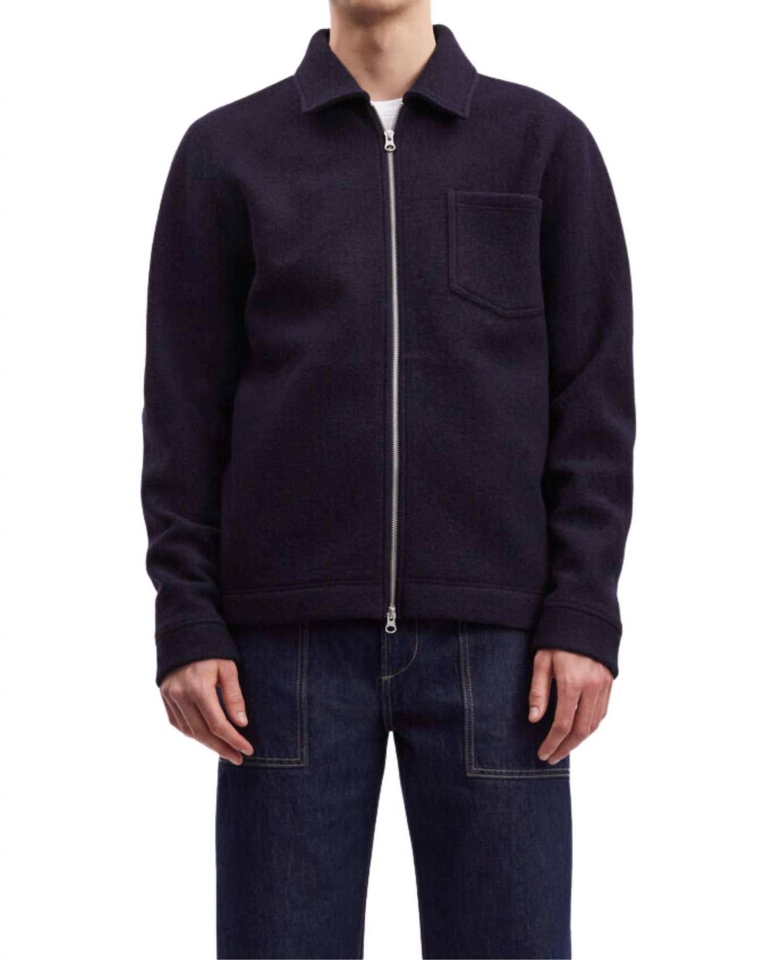 Introducing the Hannes Full Zip Jacket by SAMSOE, perfect for adding a stylish layer to your fall wardrobe. This men's lightweight jacket in solid navy features long sleeves and is composed of 100% wool, ensuring comfort and warmth. With a practical two-way front zip closure and convenient pockets, this piece is both functional and fashionable. Crafted for a vacation occasion, it should be dry cleaned to maintain its quality and appearance.