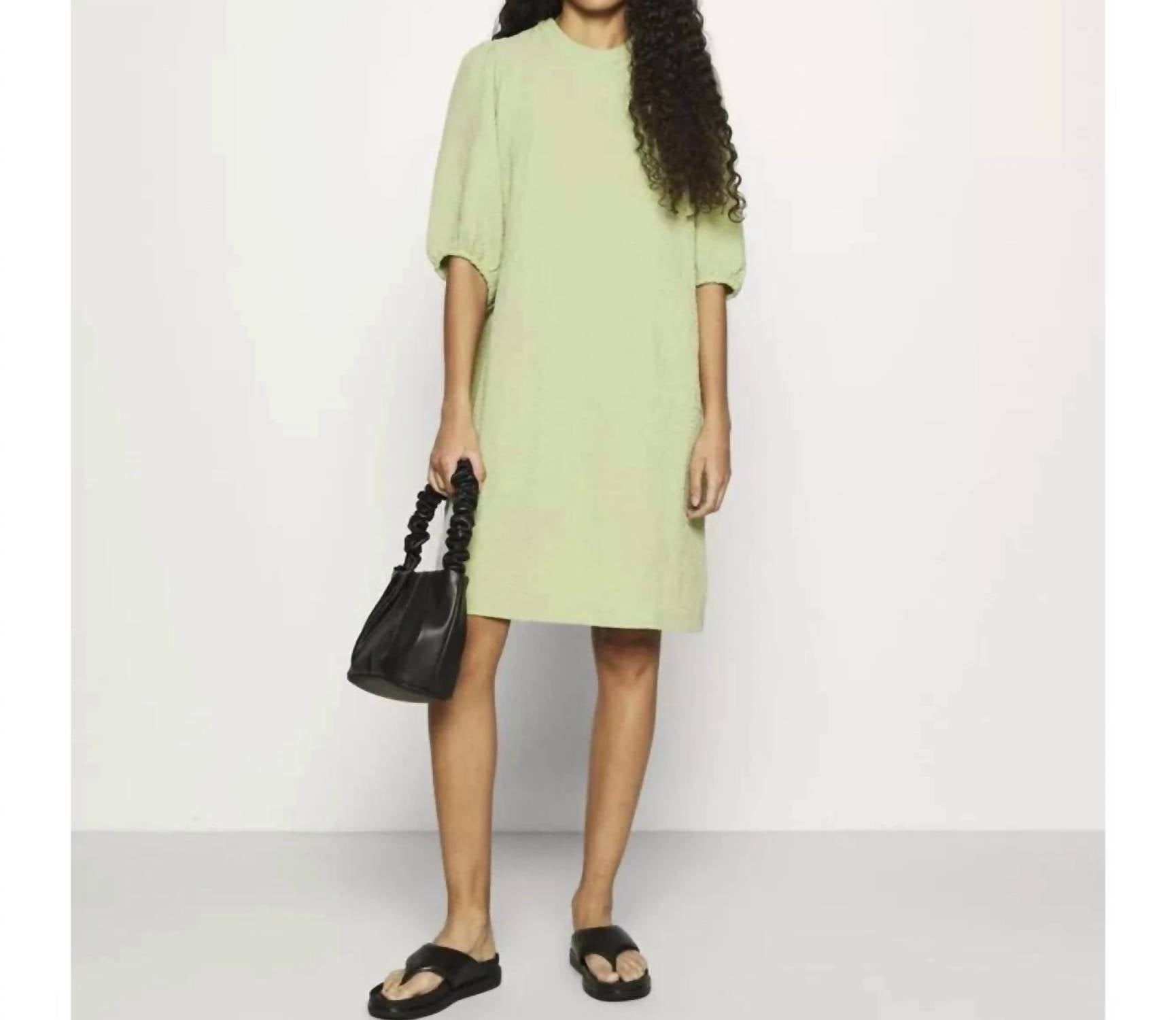 The perfect length dress does exist. Elevate your autumn wardrobe with the Junis Crinkle Crewneck Shift Dress by SAMSOE. Crafted with elbow-length puff sleeves from recycled polyester with a hint of stretch, this midi dress features a luxurious crinkled texture for a stylish flair. In a solid Tarragon color, its shift silhouette is perfect for any occasion. With a convenient pull-on closure, it promises ease and comfort, while machine washability ensures practical maintenance. 100% Polyester.