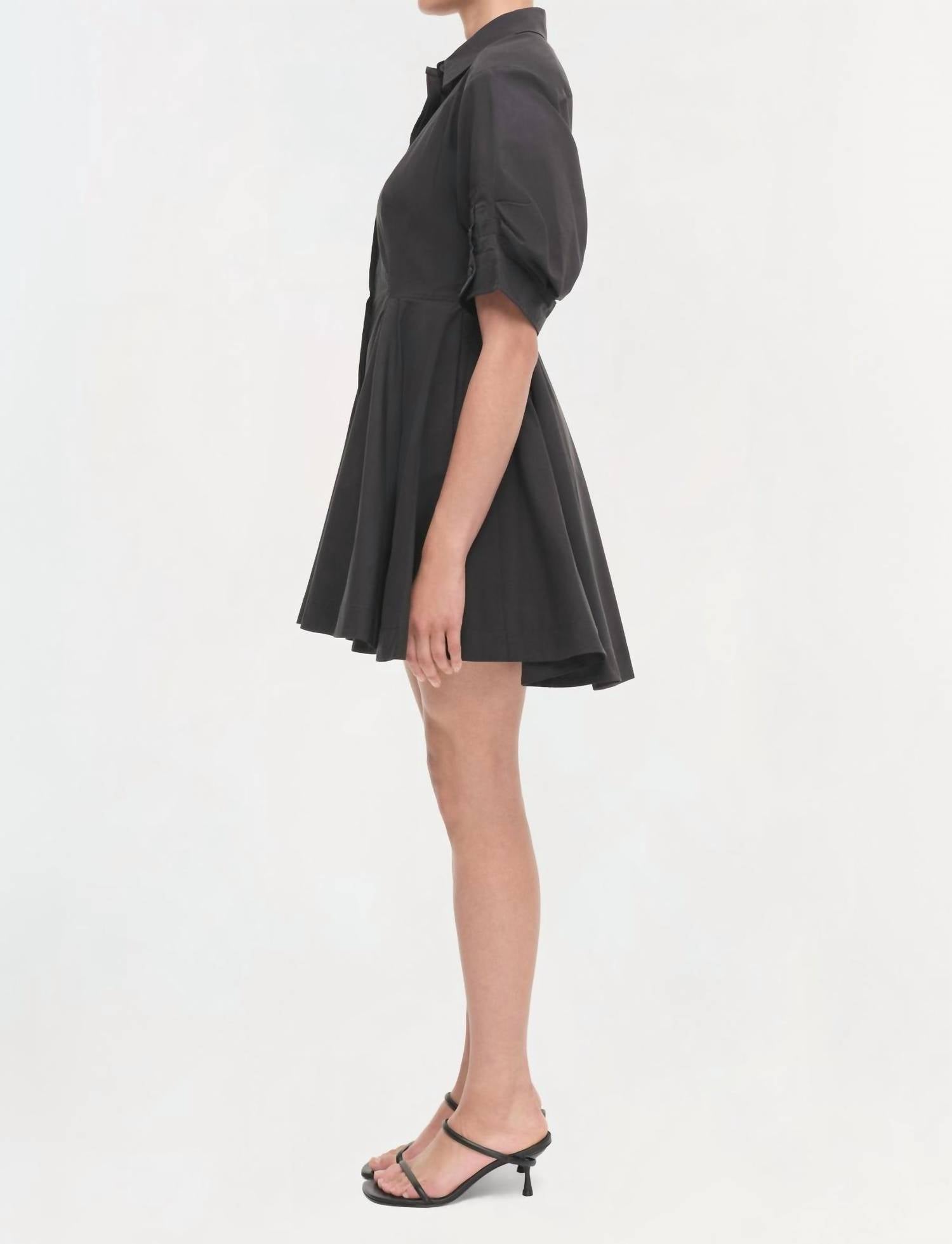 Elevate your wardrobe with the SIMKHAI Jazzie Mini Dress, a sophisticated choice in timeless black. This A-line dress features elbow-length sleeves and a stylish collar, crafted from a blend of 63% cotton and 37% polyester for a comfortable fit. Designed with practicality in mind, it includes button front closures and functional pockets. Care is easy with a cold machine wash, allowing you to maintain its chic look effortlessly. The fully imported Jazzie Mini Dress showcases a solid pattern, perfect for making an understated yet elegant statement. Model is 5'10" and wearing size 2.