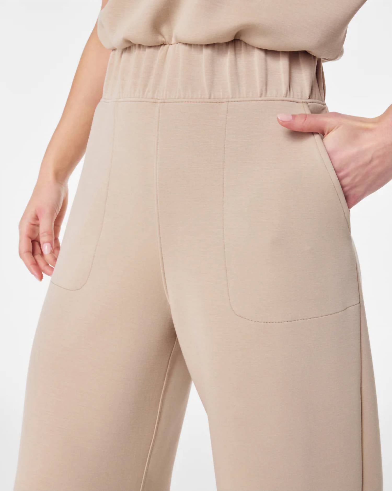 The perfect outfit choice when you you need something quick to throw on and still want to look efforlessly cool. Embrace effortless elegance with the Spanx AirEssentials Crop Wide Leg Jumpsuit in Tahini. Crafted from soft modal, this minimalist jumpsuit features a flattering high-rise elastic waist and a chic wide-leg design perfect for a relaxed fit. Equipped with functional pockets and a convenient pull-on closure, it's as practical as it is stylish. Care instructions: Machine wash and tumble dry for easy upkeep.