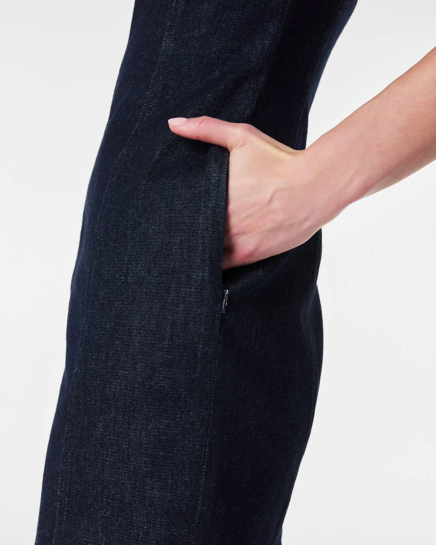 The perfect mini dress for those warmer months. Introducing the Denim Seamed Shift Dress by Spanx, a chic piece perfect for any dinner party occasion. Crafted from premium stretch denim, this mini dress in solid black features a flattering, retro-inspired silhouette with front seams to enhance your shape. Practical details include an easy zip closure and convenient side zip pockets. Designed with women in mind, it is sure to become a staple in your spring wardrobe.
