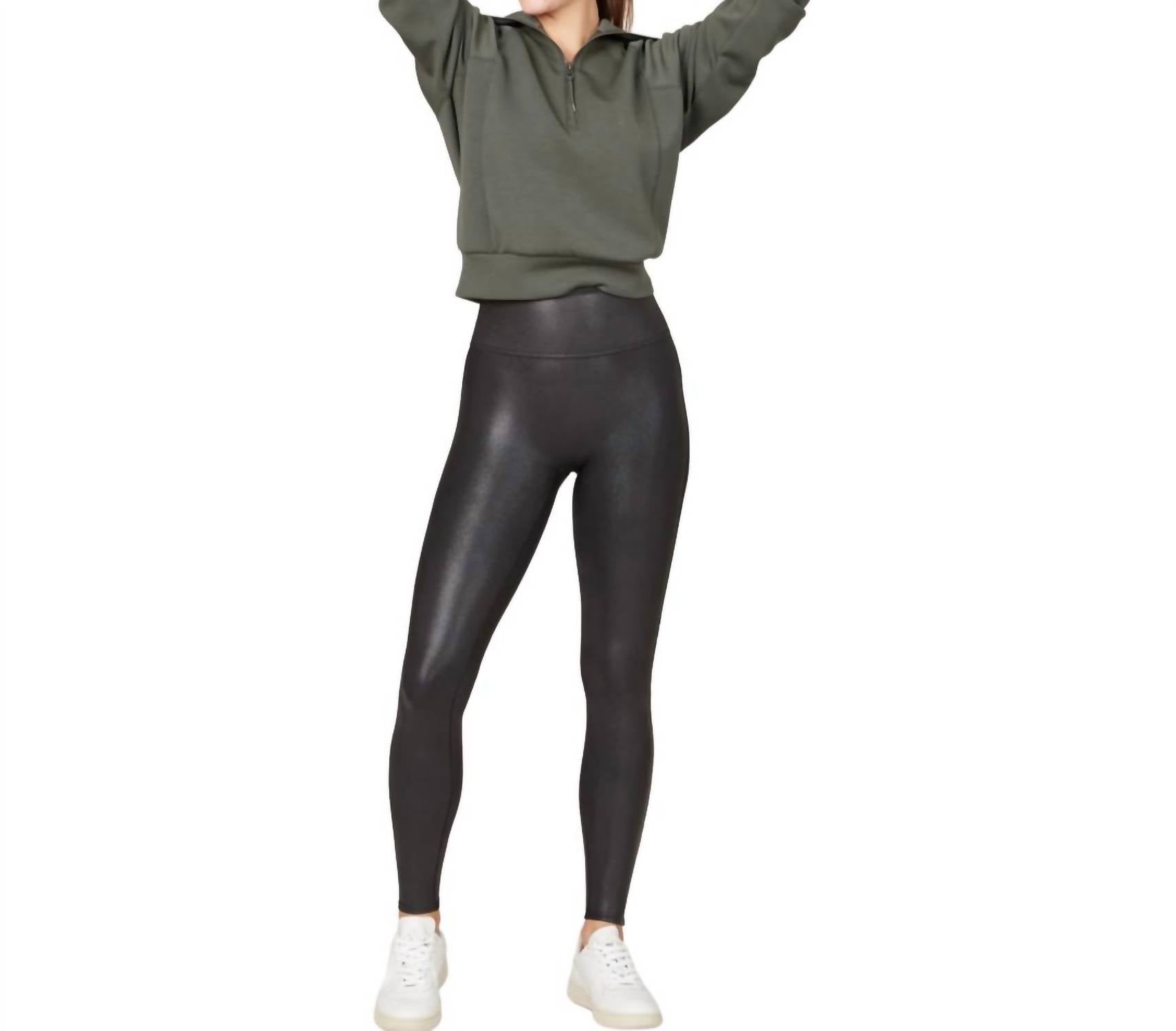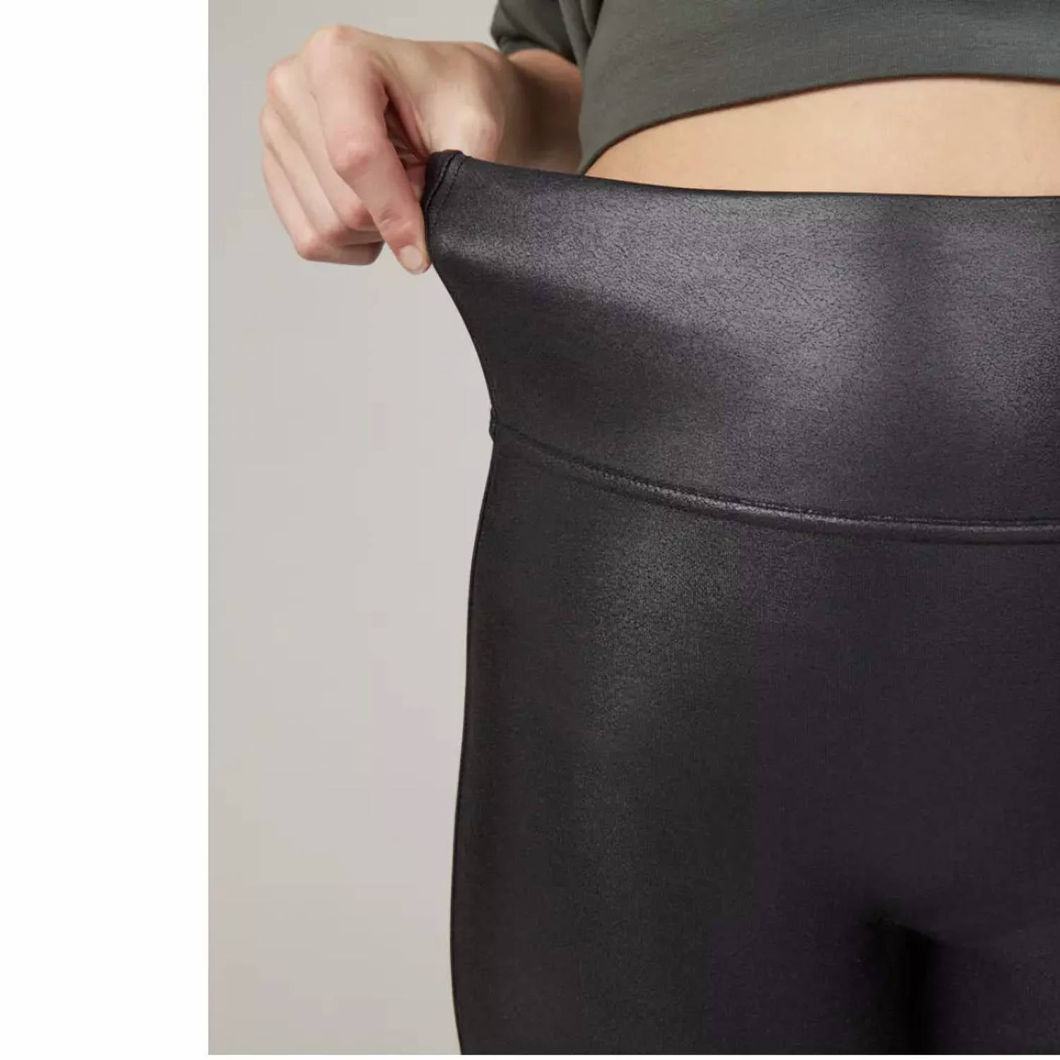 The legging you didn't know you needed and you won't want to take off. Discover the Faux Leather Leggings by Spanx, a best-selling favorite designed to flatter with style and comfort. Composed of sleek, smoothing faux leather, these leggings contour with a skinny leg design and feature a contoured Power Waistband for core compression. Made in Vietnam with a regular fit, they offer a chic, solid black look without the need for closures. Ideal for activewear enthusiasts, these leggings are a seamless addition to any wardrobe.