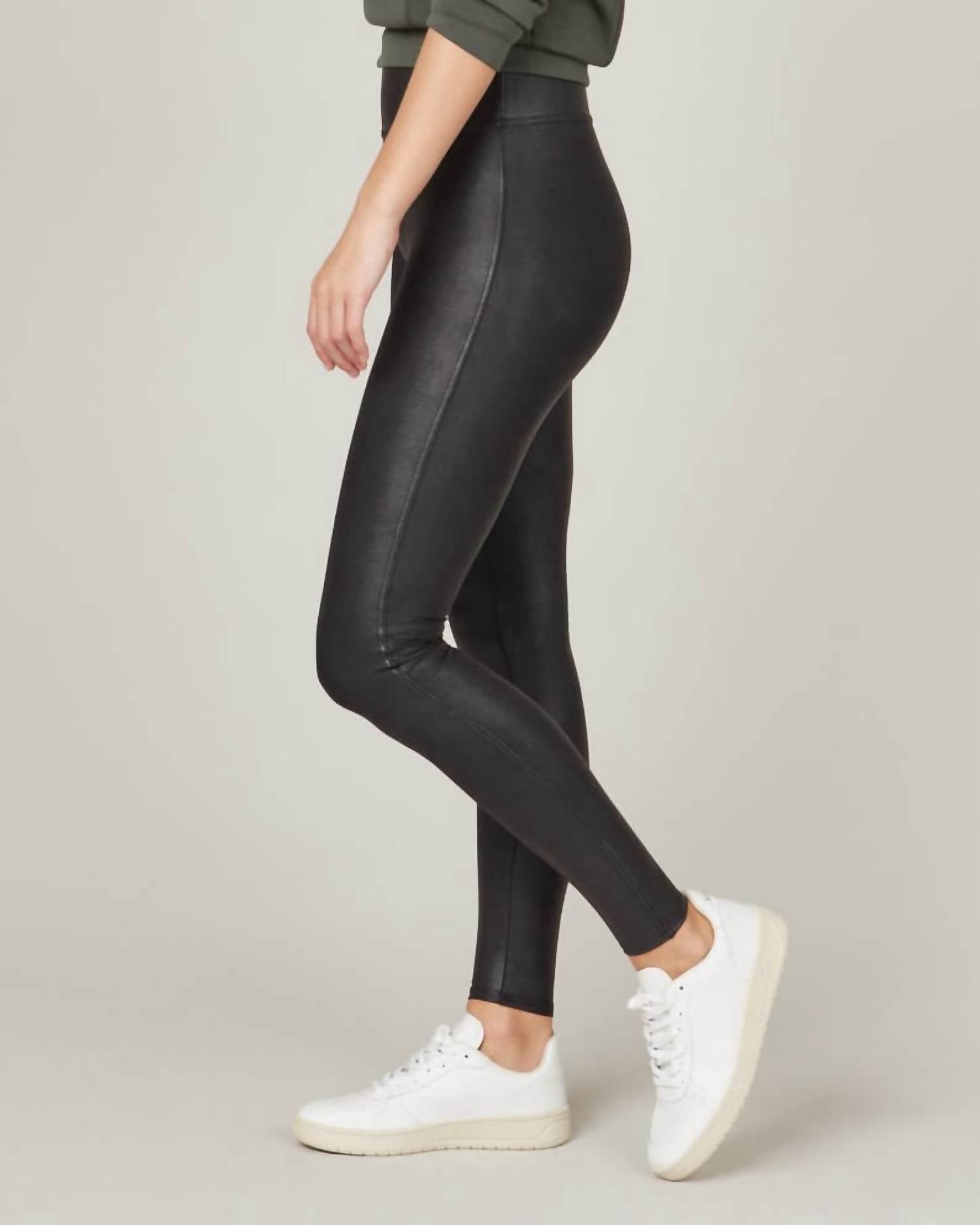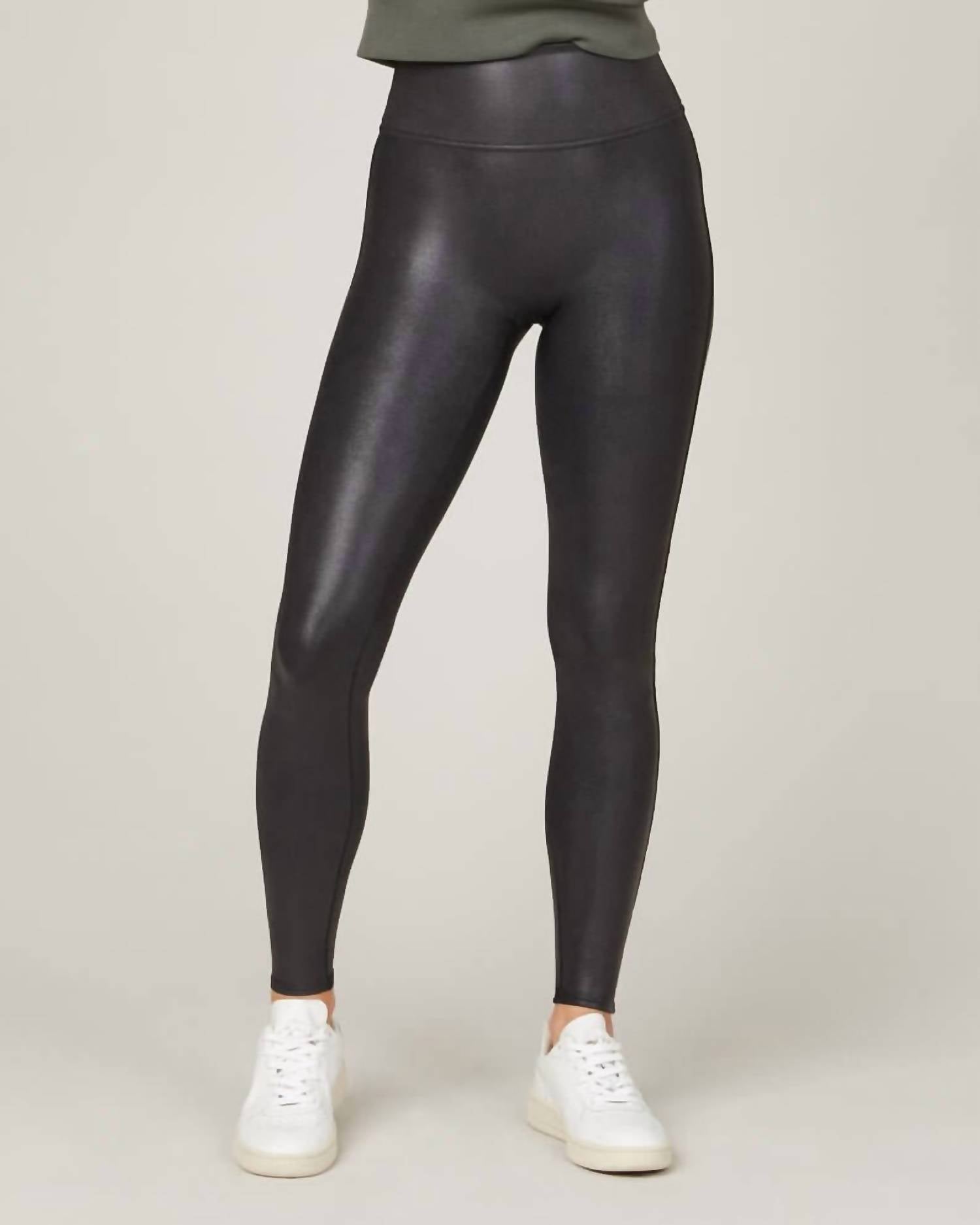 The legging you didn't know you needed and you won't want to take off. Sleek black, expertly crafted for those who seek both style and performance. Feature a high-waisted, pull-on design with a contoured Power Waistband, offering core compression and a perky rearview without any seams. Made from 87% Nylon and 13% Elastane with a polyurethane coating. Showcase Spanx's renowned core shaping technology, promising to shape and lift. Care is easy with these machine washable leggings, just turn them inside out, wash cold on a gentle cycle, and lay flat to dry. Measuring a 30" ankle-length inseam. Offer a flattering slim fit.
