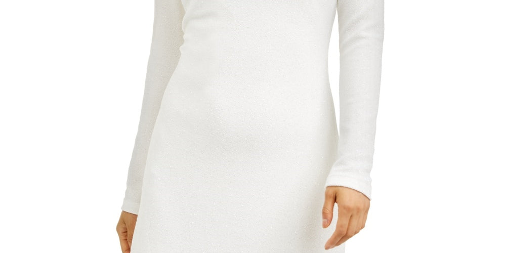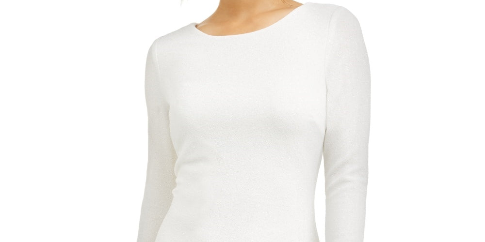 Approx. 34-1/2" long from center back neck to hem. Length is based on size 7 and varies 5/8" between sizes|Scoop neckline; Bodycon silhouette|Pullover styling|Textured glitter knit; back cutout|IMPORTANT NOTE: This item arrives with a return tag attached and instructions for removal. Once the tag is removed from the dress, this item cannot be returned.
