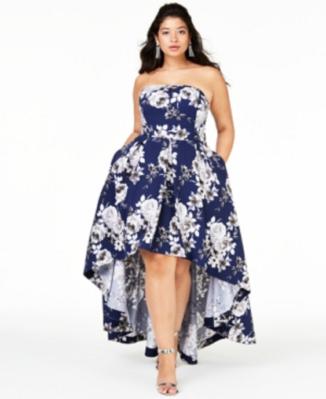 Femme fatale! Rock this plus size gown from Speechless all night long with it's strapless silhouette and a dramatic high-low hem for added coverage