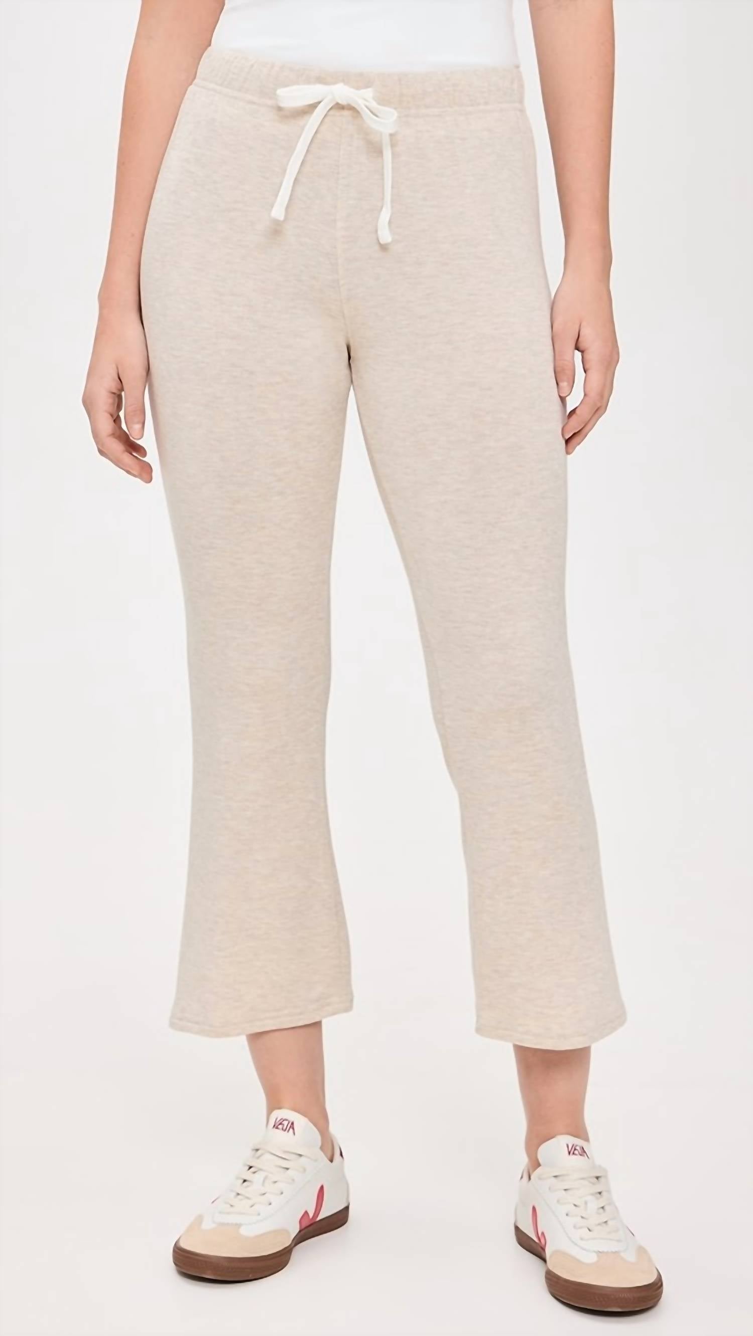 Discover the Brooks Fleece Cropped Flare Sweatpants by SPLITS59, designed for ultimate comfort in Heathered Oatmeal. These relaxed fit track pants feature a straight leg style and mid-rise waist, crafted from soft Modal material for a luxe feel. Made for women, this pull-on piece is perfect for warm-ups, cool downs, and cool weather workouts, offering a "comfy casual chic" appeal. Care: Machine wash.