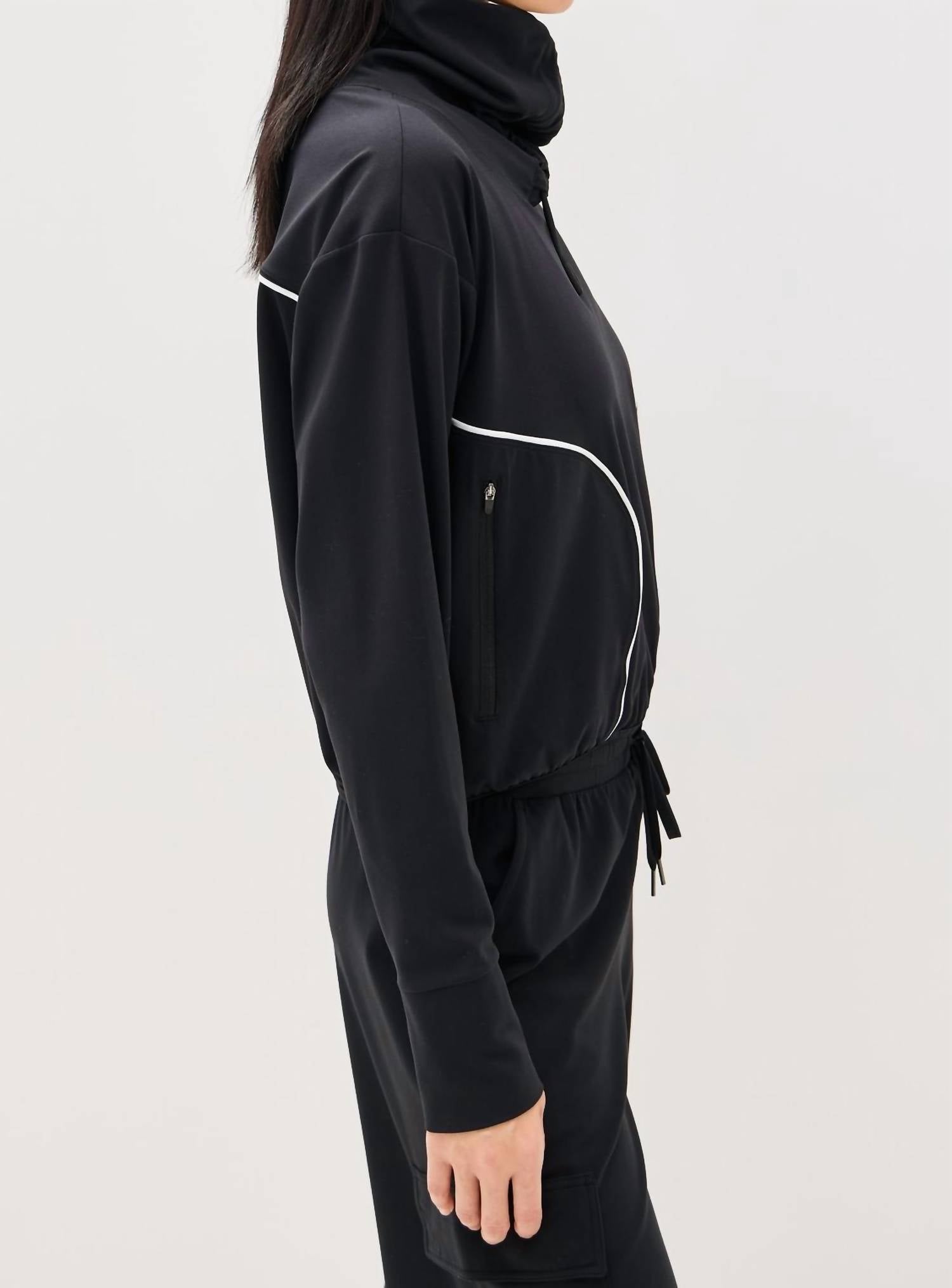 A casual yet cool jacket that every closset needs. Elevate your wardrobe with the Rosie Airweight High Neck Jacket by SPLITS59, a sleek and versatile piece in solid black. This women's casual jacket features long sleeves and a mockneck, offering full-length coverage in a buttery soft nylon blend. With a convenient pull-on closure, it's the perfect pick for layering or wearing alone during fall vacations. Composition: 81% Nylon, 19% Spandex. Care: Wash cold.
