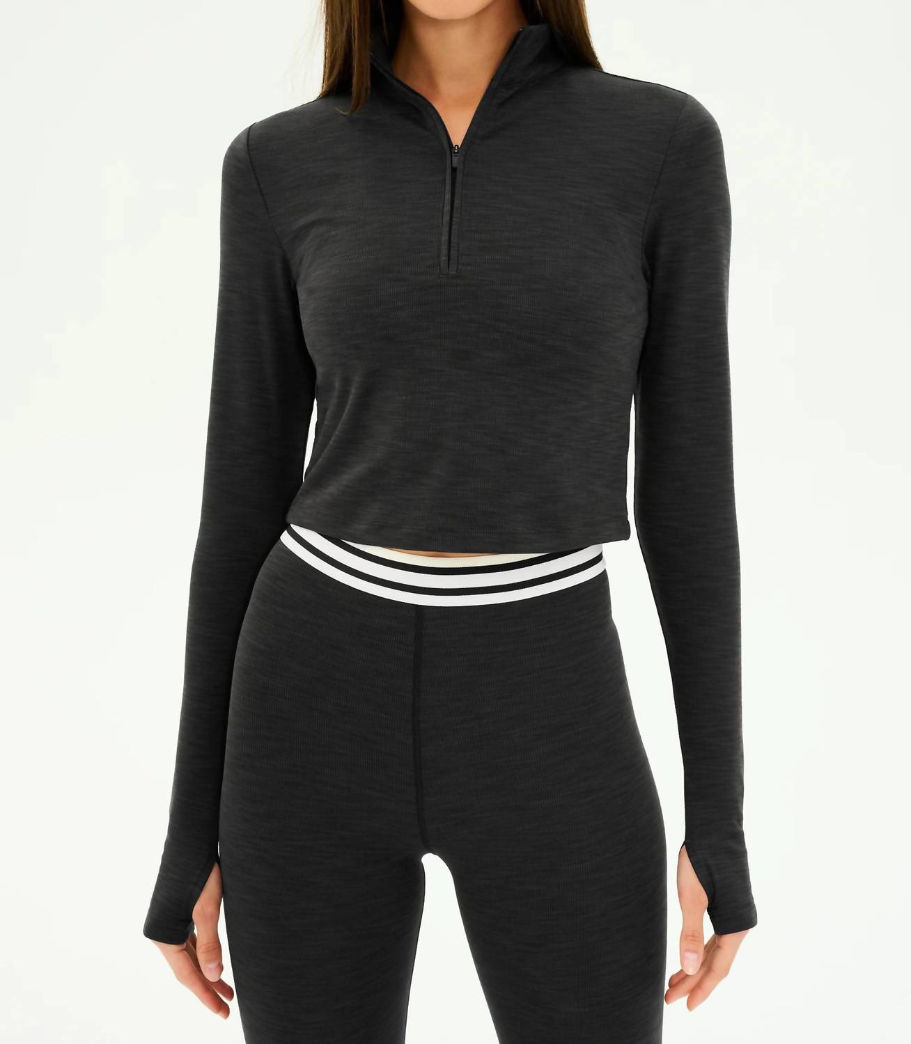 Offered in a chic Heather/Graphite shade. Features long sleeves and a stylish collar neckline. Crafted from high-performance polyester material for optimal support. Perfect for various activities including running, yoga, and gym workouts. Enjoy the ease of a zip closure.
