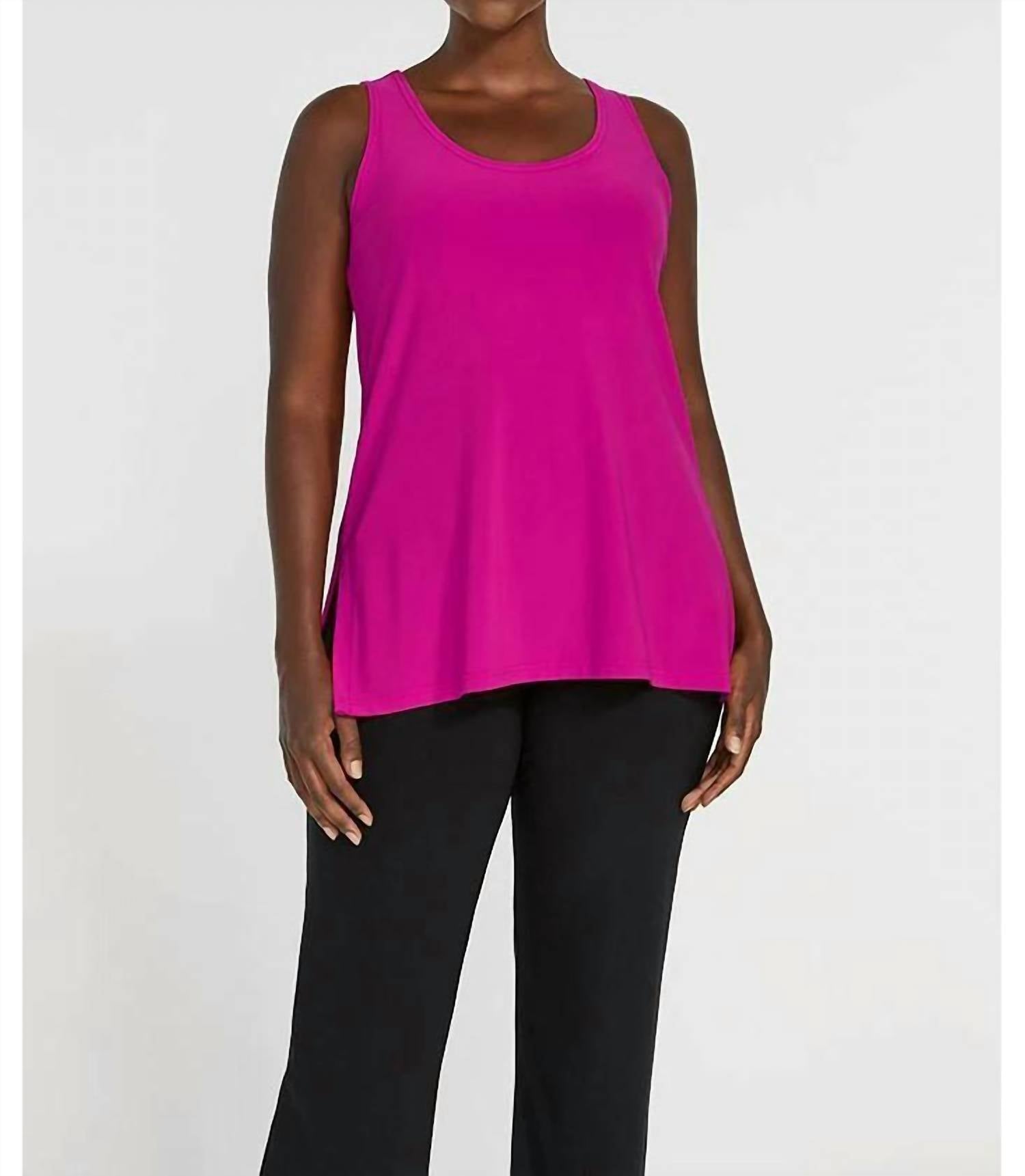 Introducing the Go To Tank Top by Sympli, a summer staple in a soft lavender hue designed for effortless style. This sleeveless tank, crafted from 94% Polyester and 6% Spandex, features a relaxed fit that sits comfortably at the hips. Proudly made in Canada, it offers a simple pull-on closure and a classic scoopneck, perfect for versatile layering. Care: Machine wash cold, hang to dry.