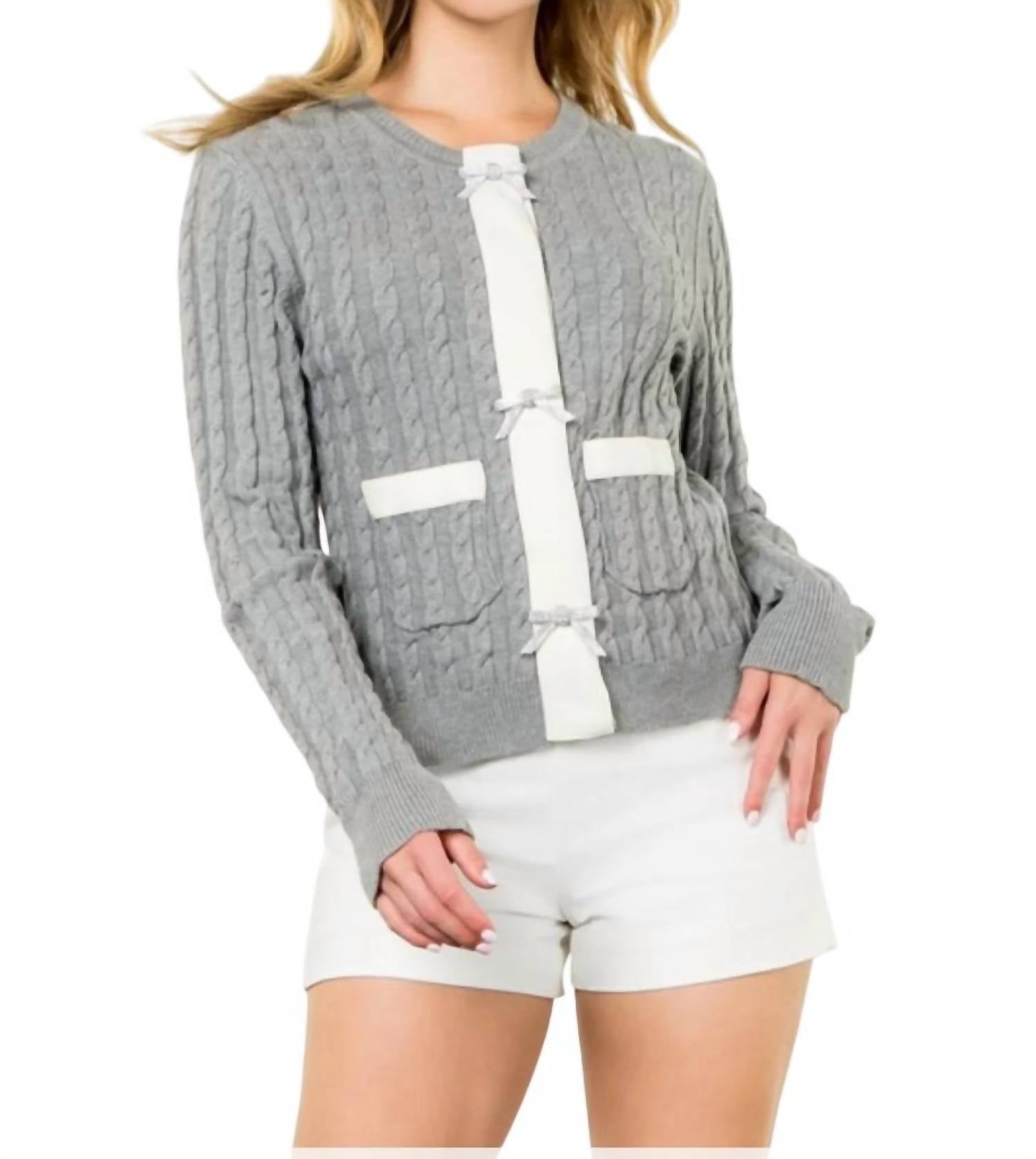 Throw this adorable cardigan over any cami or tank top. This long sleeve cardigan features a charming rib knit design with a viscose blend composition: 43% viscose, 32% nylon, 25% polyester. Made with a classic crewneck and equipped with convenient pockets, it's both stylish and functional. Care instructions recommend hand washing and laying flat to dry, ensuring longevity and maintaining its true-to-size fit.